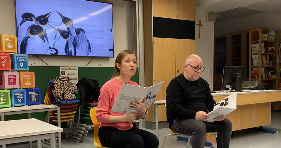 Lesung - Nelson der Pinguin 09. März 2026 von Melita Schuler1 2025/26Am 9. März wurde die erste Klasse von Peter Wolf und Katharina Hauser vom Tiroler Kulturservice besucht.