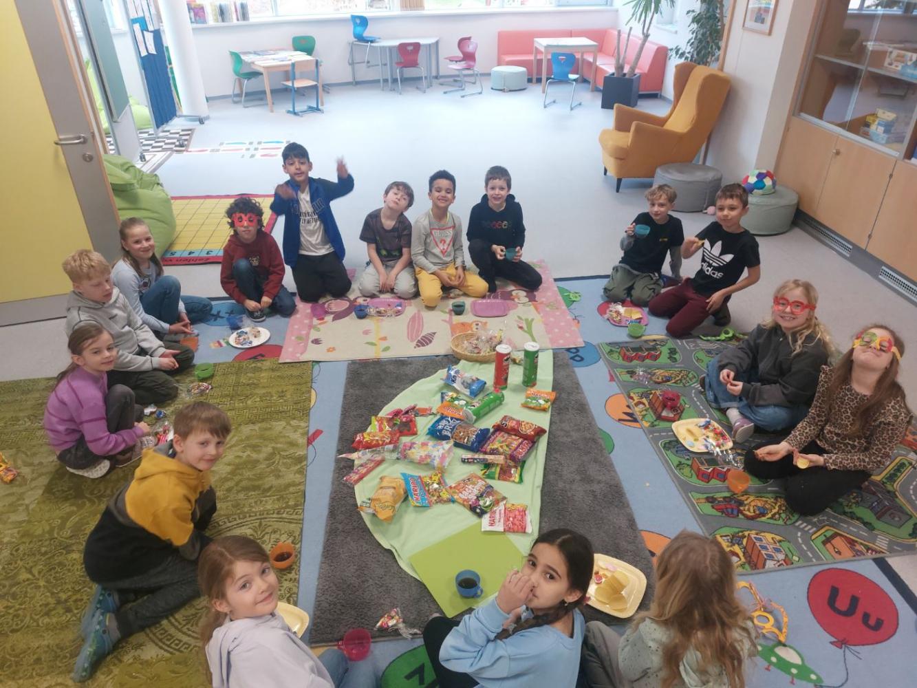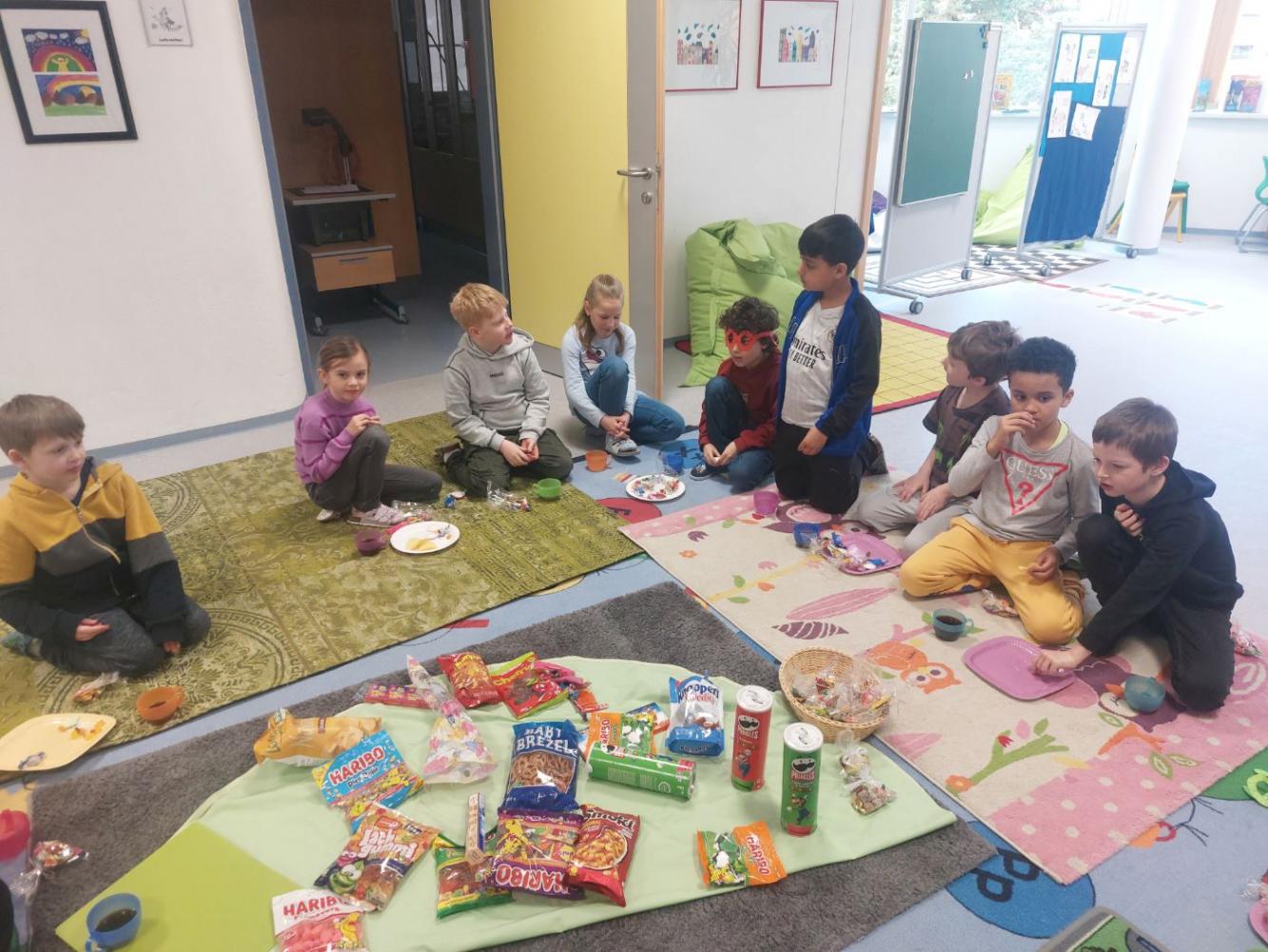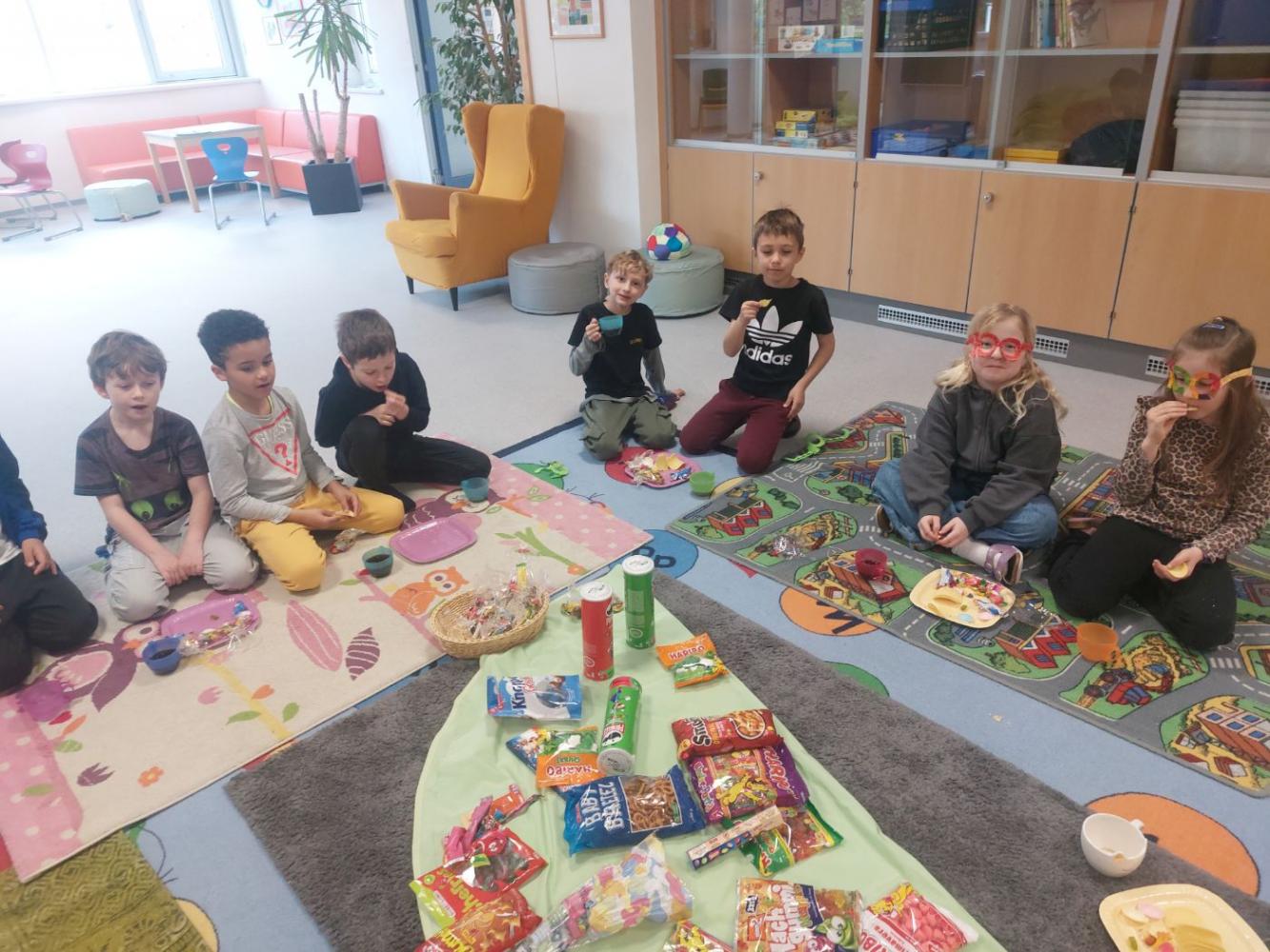 Und wie es sich bei einer Party gehört, tranken wir Cola, aßen Süßes und Chips.