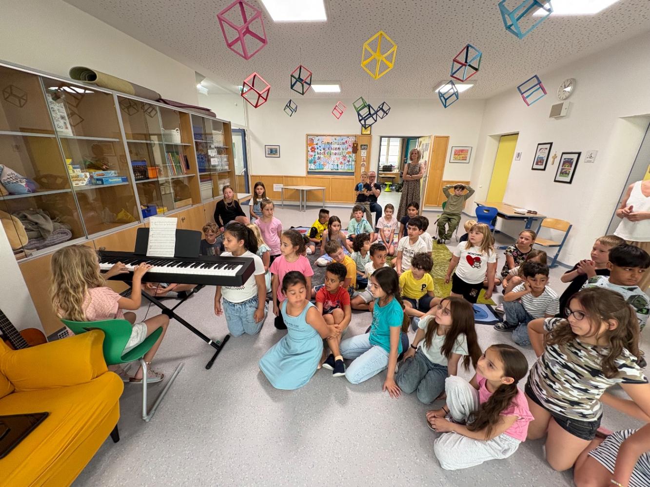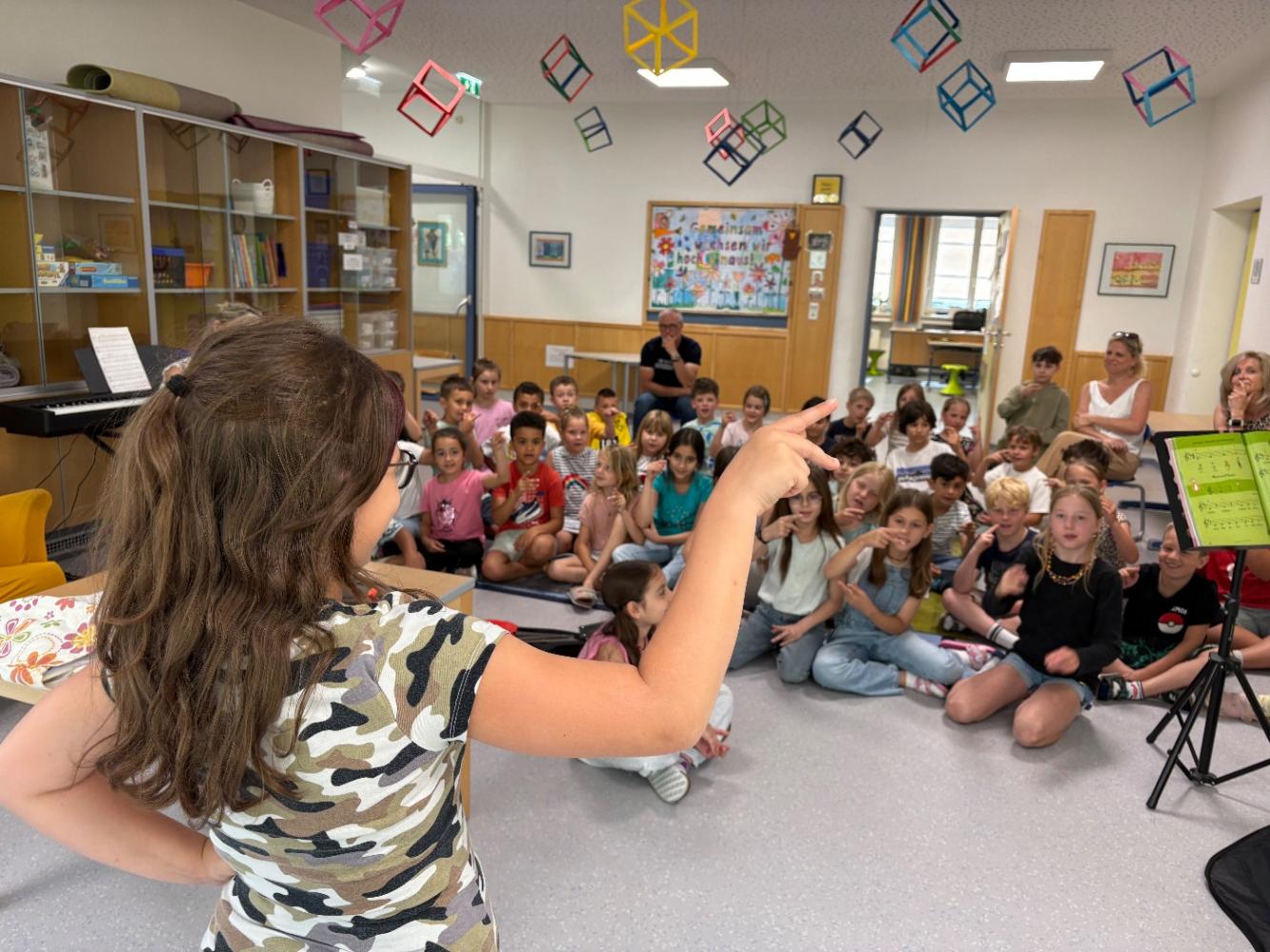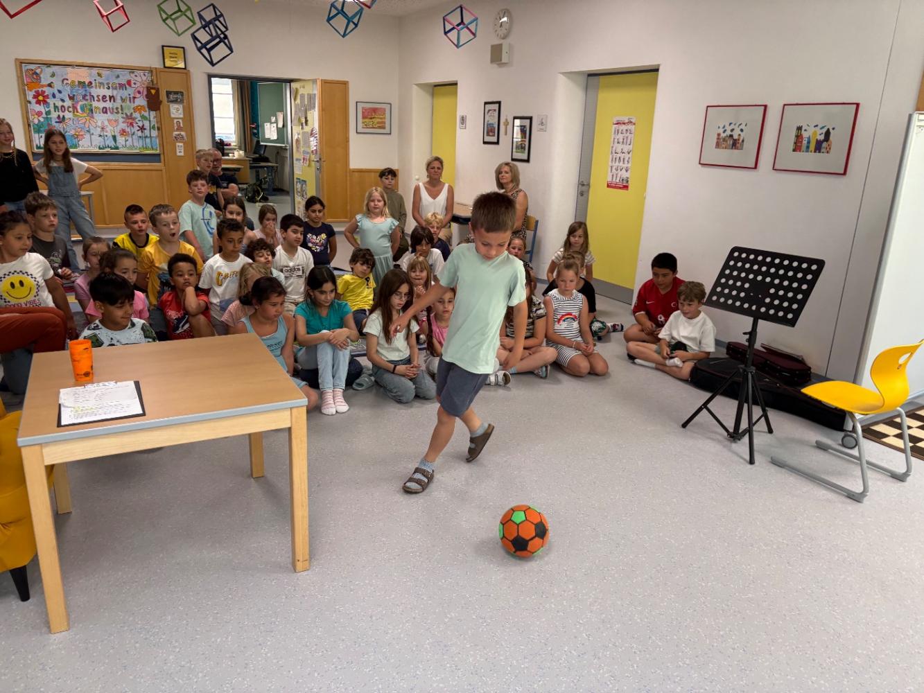 Dabei durften wir eine bunte Vielfalt an Darbietungen erleben: faszinierende Zaubertricks, beeindruckendes fußballerisches Können, eingängiges Klavierspiel, mitreißenden Gesang mit Gitarrenbegleitung, einfühlsame Soloauftritte auf Blockflöte und Violine, eine schwungvolle musikalische Begleitung durch die dritte Klasse, erste Einblicke in die Gebärdensprache sowie einen fröhlichen Ringtanz.