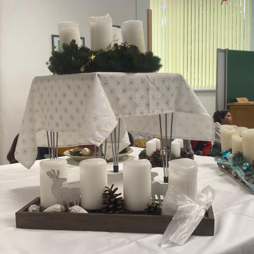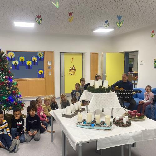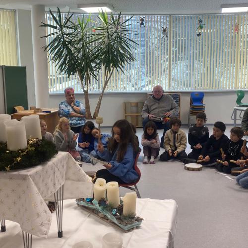 Adventkranzsegnung von Volksschule Perjen 04. Dezember 2023 Schuljahr 2023/2024 Gemeinsame Aktivitäten Mit einer kleinen Feierlichkeit und Gesang wurden unsere Adventkränze von Diakon Thaler Peter gesegnet.
