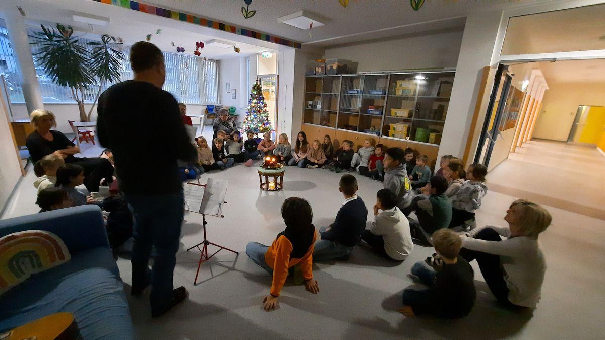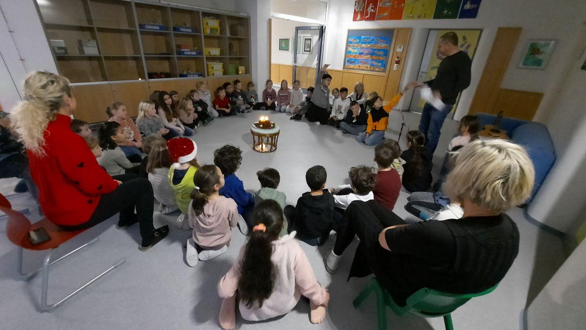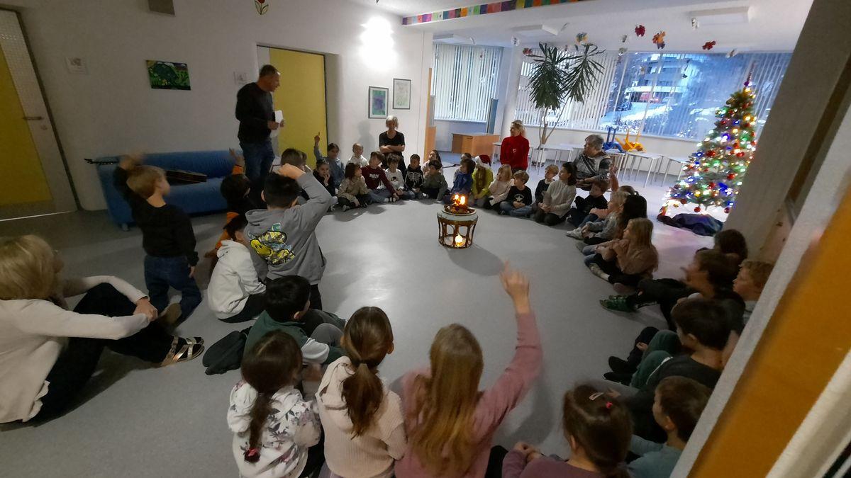 Am Montag, den 16. Dezember, starteten wir mit einer gemeinsamen Einstimmung in die letzte Schulwoche vor den Weihnachtsferien. Wir hörten eine Geschichte, wiederholten die Bedeutung der Kerzen des Adventkranzes und sangen Lieder.