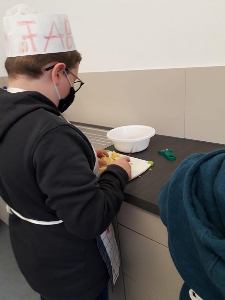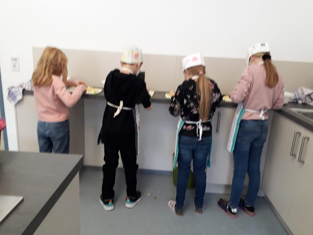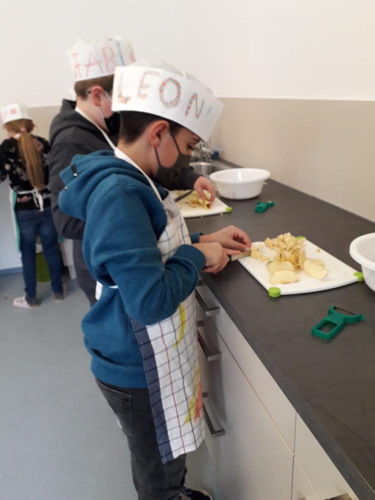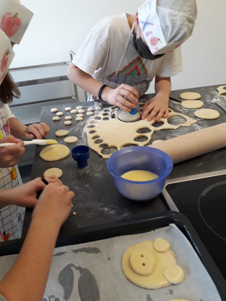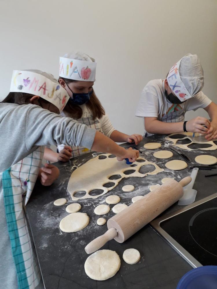 In der unverbindlichen Übung Ernährung - Haushalt / Werken haben die Kinder der 3. und 4. Schulstufe Apfeltaschen und Glücksschweinchen gebacken. Die fertigen Schweinchen und Apfeltaschen haben sie anschließend entweder genossen oder mit nach Hause genommen.