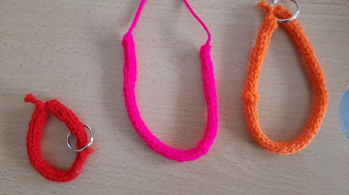 Im Werkunterricht beschäftigten sich die Kinder der vierten Stufe mit dem Thema "Maschenbilden". Dazu übten sie zuerst das Fingerstricken, bevor sie mit der Stricklisel einen Strickschlauch herstellten, den sie als Schlüsselanhänger, als Armband oder als Halskette benützen. Der Anfang war zwar schwierig, aber am Ende schafften es alle Kinder.