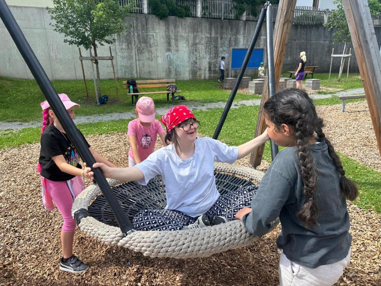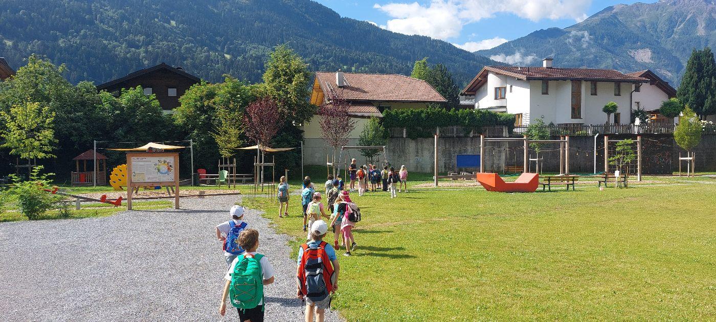 Dort trafen wir am Spielplatz bei der MS Zams unsere Freunde und Partnerklasse der ASO Zams.