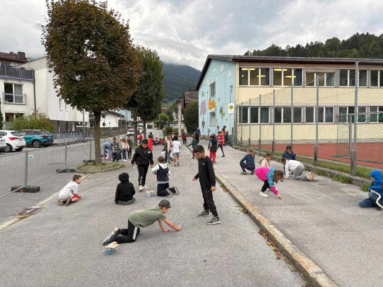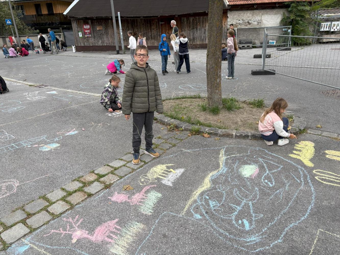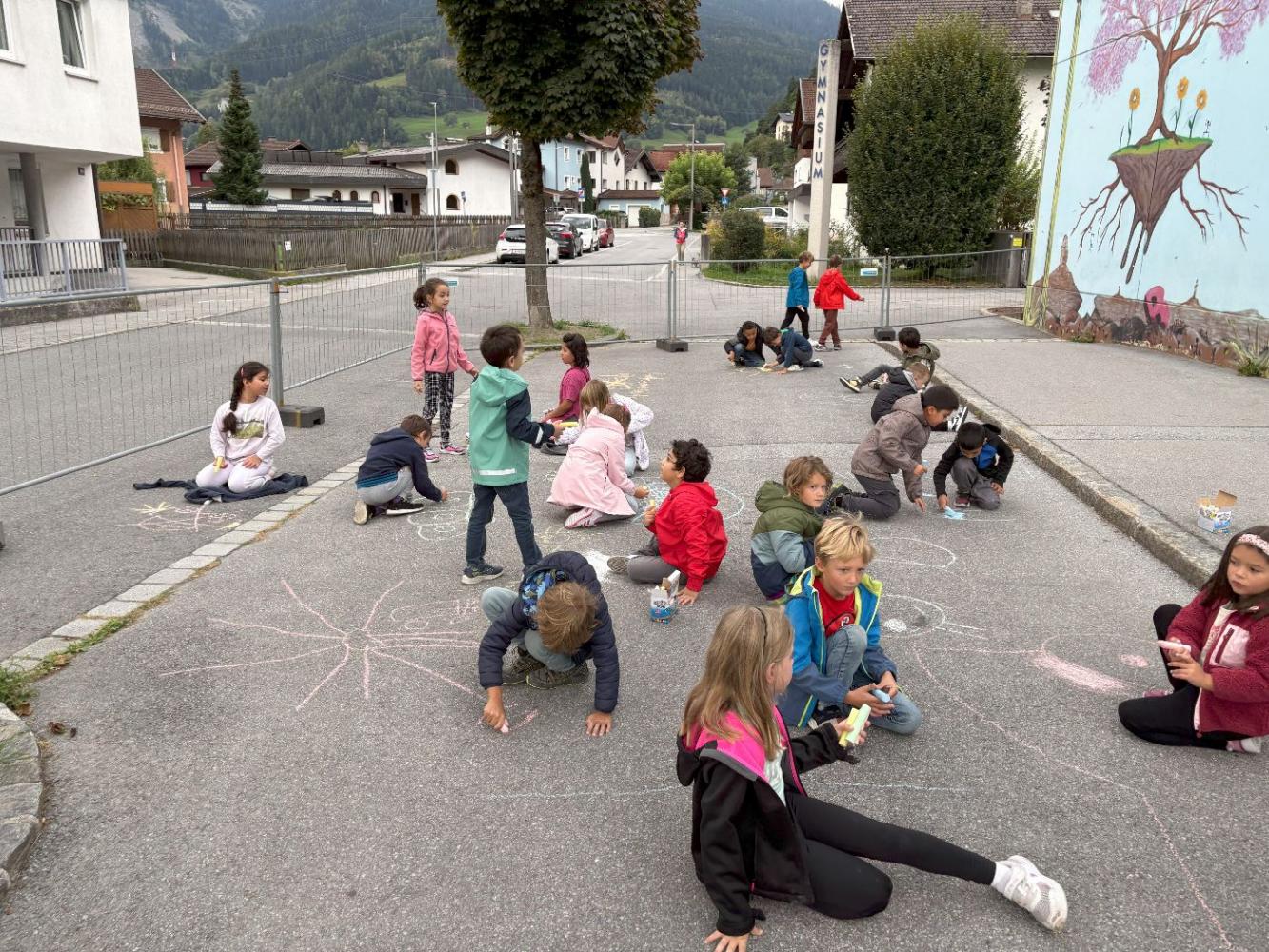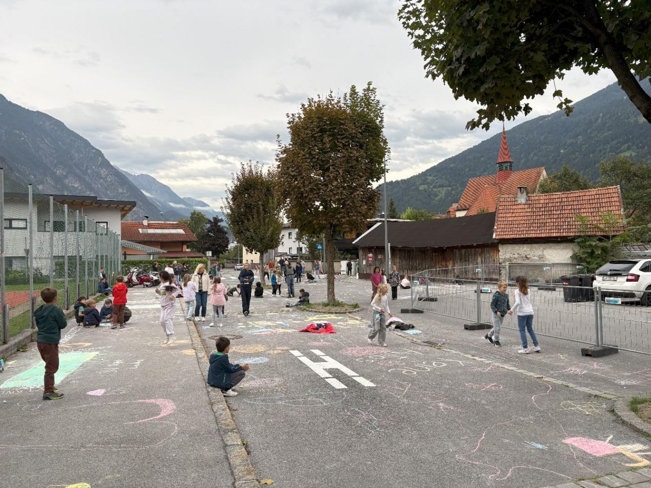 Am 22. September verwandelte sich die Schulstraße in Perjen in ein farbenfrohes Kunstwerk: Schülerinnen und Schüler der Volksschule Perjen sowie des Gymnasiums Landeck bemalten die Straße mit Kreide und brachten Farbe und Kreativität in den Schulalltag.