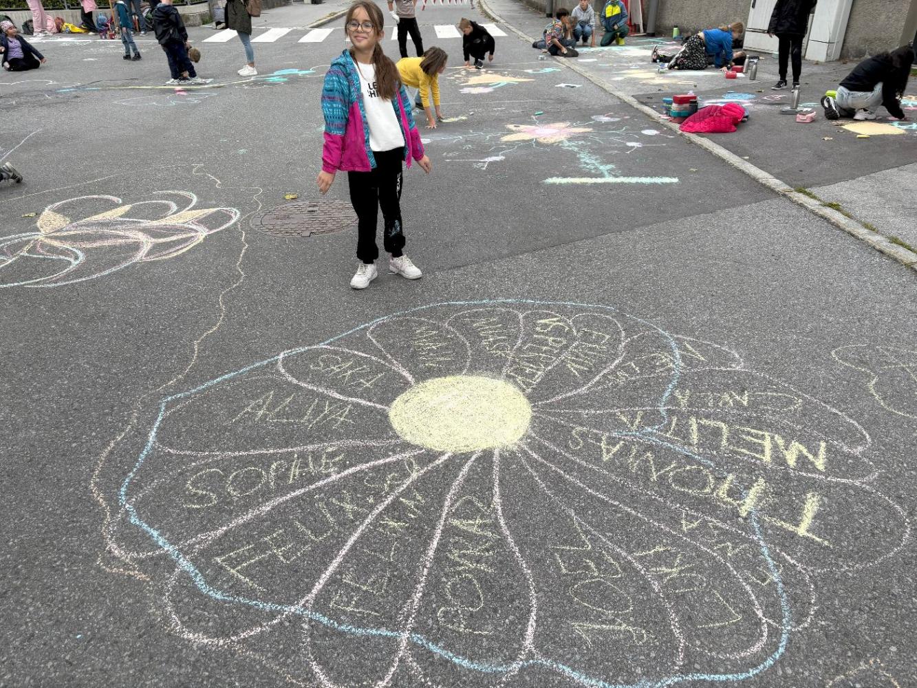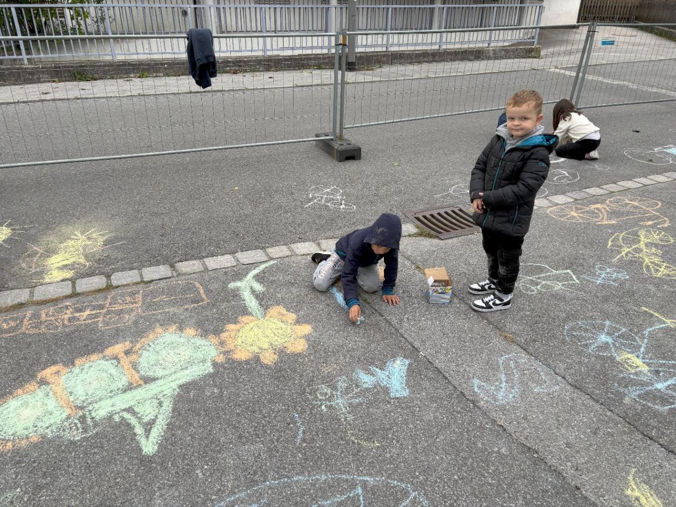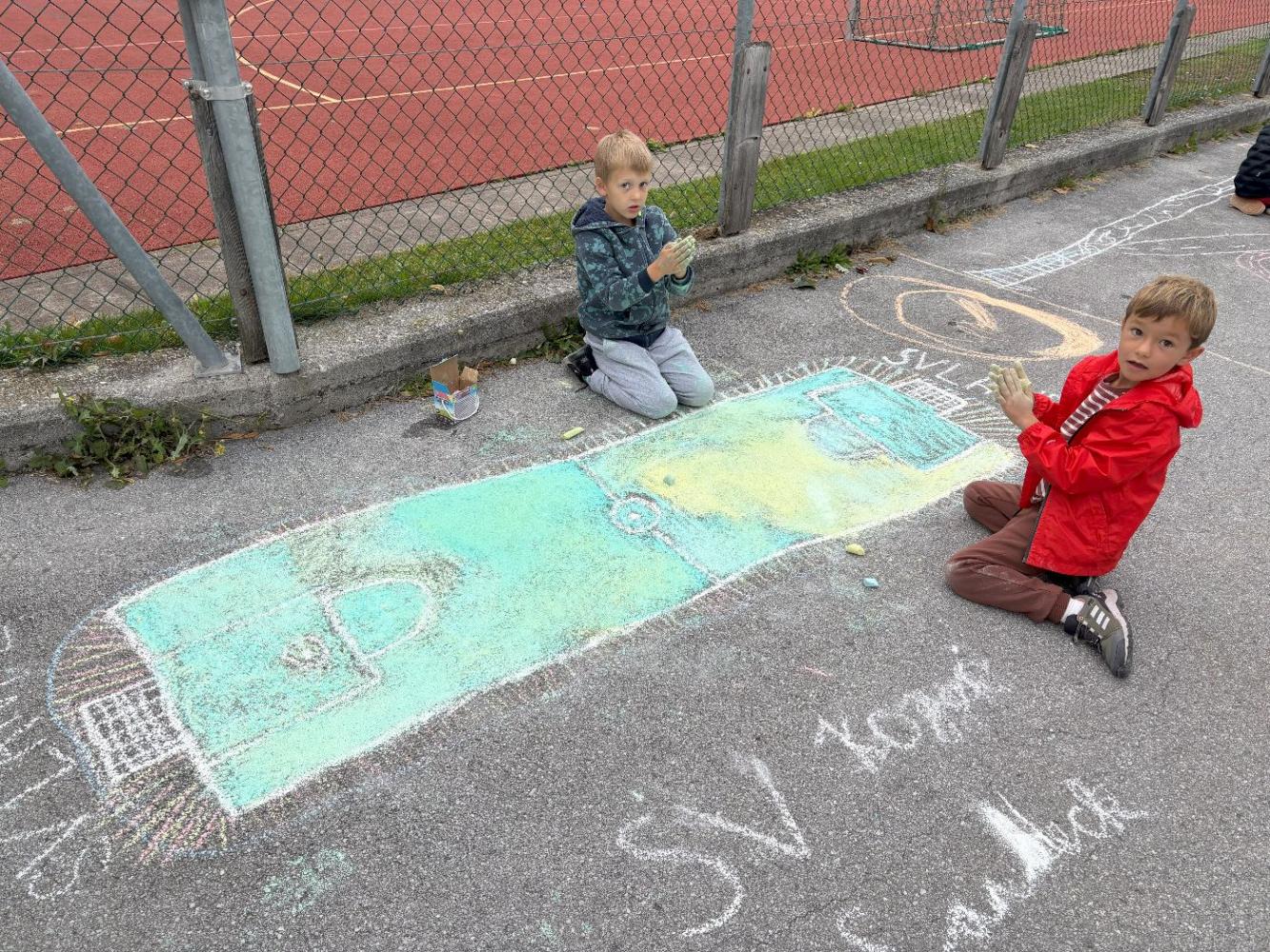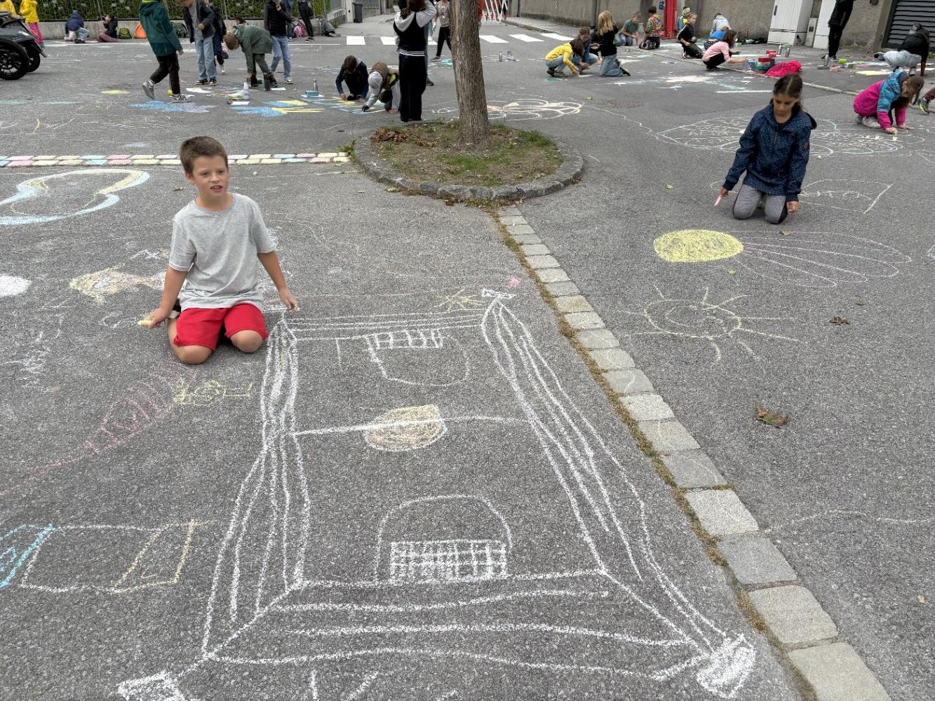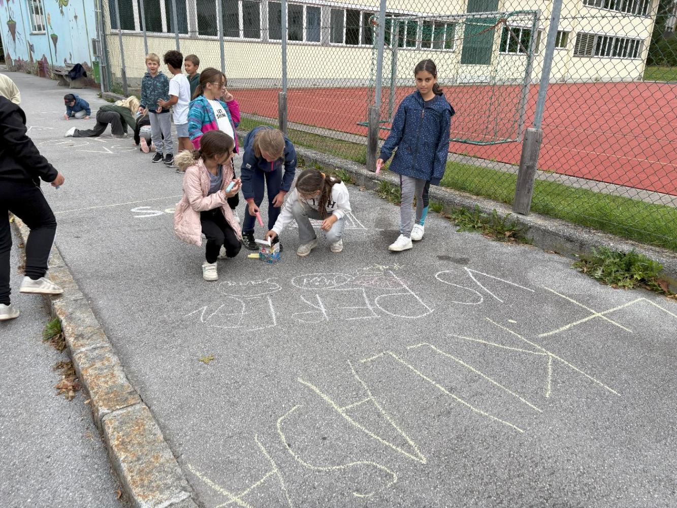 Am 22. September verwandelte sich die Schulstraße in Perjen in ein farbenfrohes Kunstwerk: Schülerinnen und Schüler der Volksschule Perjen sowie des Gymnasiums Landeck bemalten die Straße mit Kreide und brachten Farbe und Kreativität in den Schulalltag.