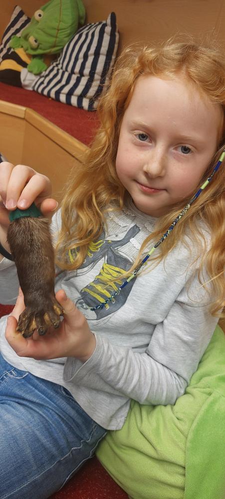Biber Workshop von Natopia von Carla Schatz 21. Dezember 2022 Schuljahr 2022/2023 Am Mittwoch 21.12. besuchte uns im Rahmen des Sachunterrichts Andrea von Natopia. Sie brachte uns den Biber und seinen Lebensraum näher. Ganz besonders toll fanden wir die verschiedenen Dinge wie Fell, Zähne und Pfote die sie uns zeigte.