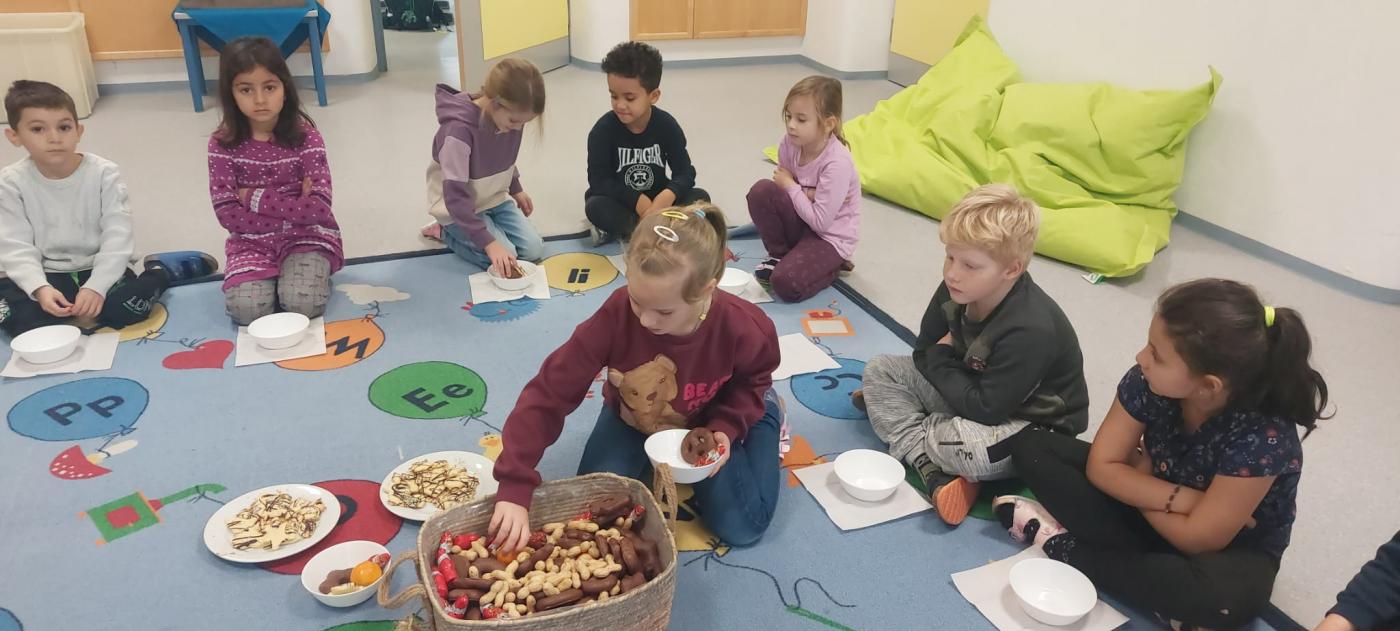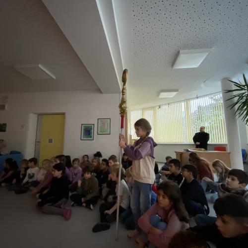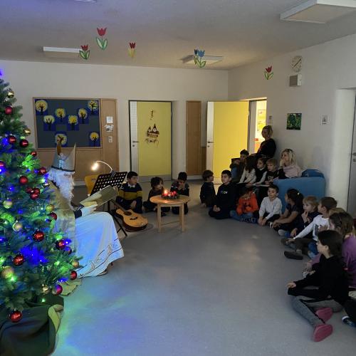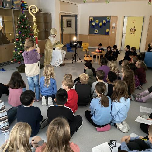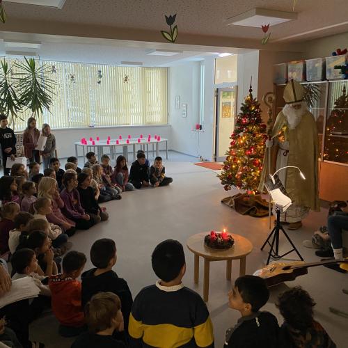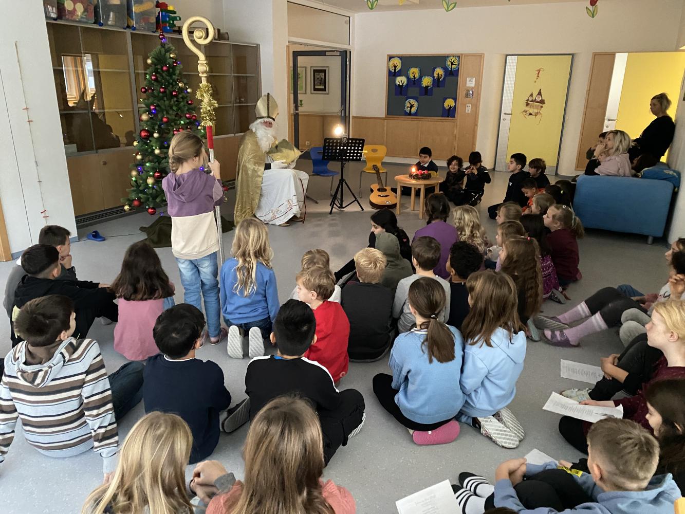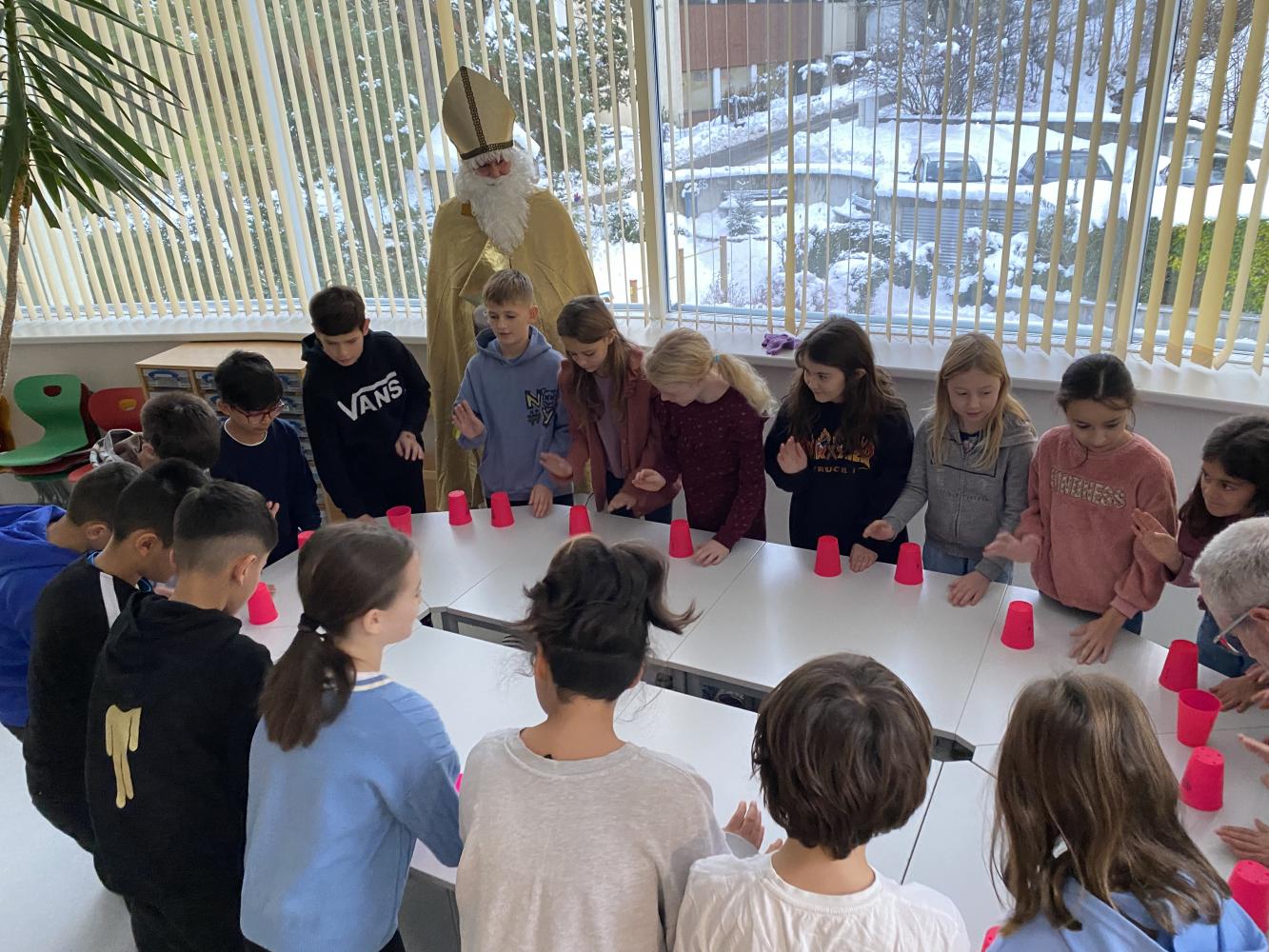 Am 6.12.2023 freuten sich die Kinder ganz besonders über den Besuch von Bischof Nikolaus. Während die Kinder ein Lied sangen, kam er plötzlich durch die Tür. Er erzählte von seinen Aktivitäten im Sommer, las eine Geschichte vor und meinte, dass er sich bereits wieder auf den Winter gefreut hatte um den braven Kindern aus Perjen eine kleine Freude zu machen. Die Kinder hörten aufmerksam zu und durften dem Bischof auch Fragen stellen.