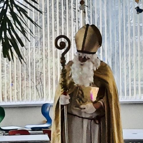 Am 6. Dezember war es wieder soweit: Der Nikolaus besuchte unsere Volksschule und brachte Kinderaugen zum Leuchten. Auch die Kindergartenkinder waren bei seinem Besuch anwesend. Mit seinem prächtigen Mantel, seinem weißen Bart und dem goldenen Bischofsstab zog er alle in seinen Bann. Die Kinder sangen fröhliche Lieder für den Nikolaus, der sich sehr darüber freute.