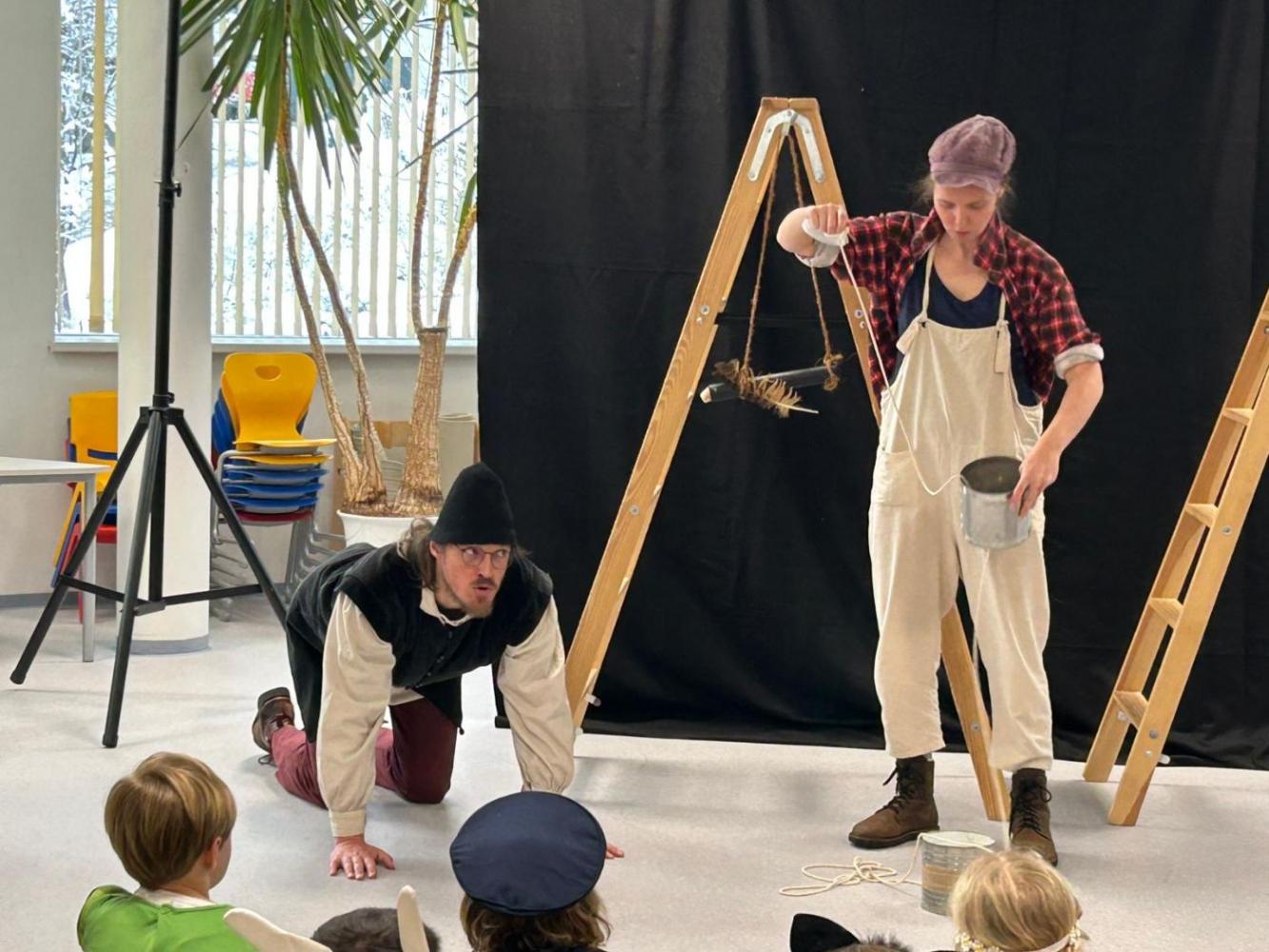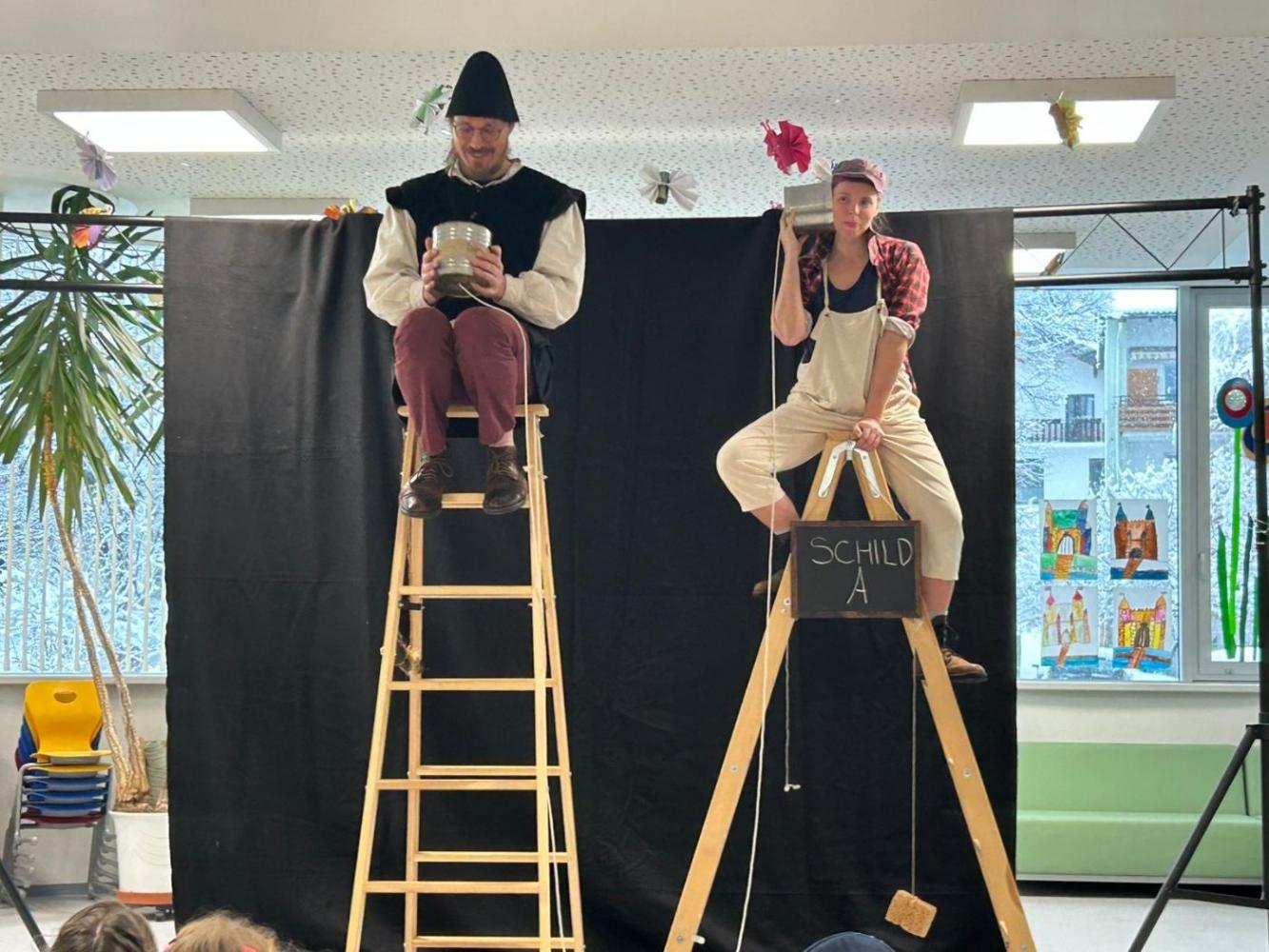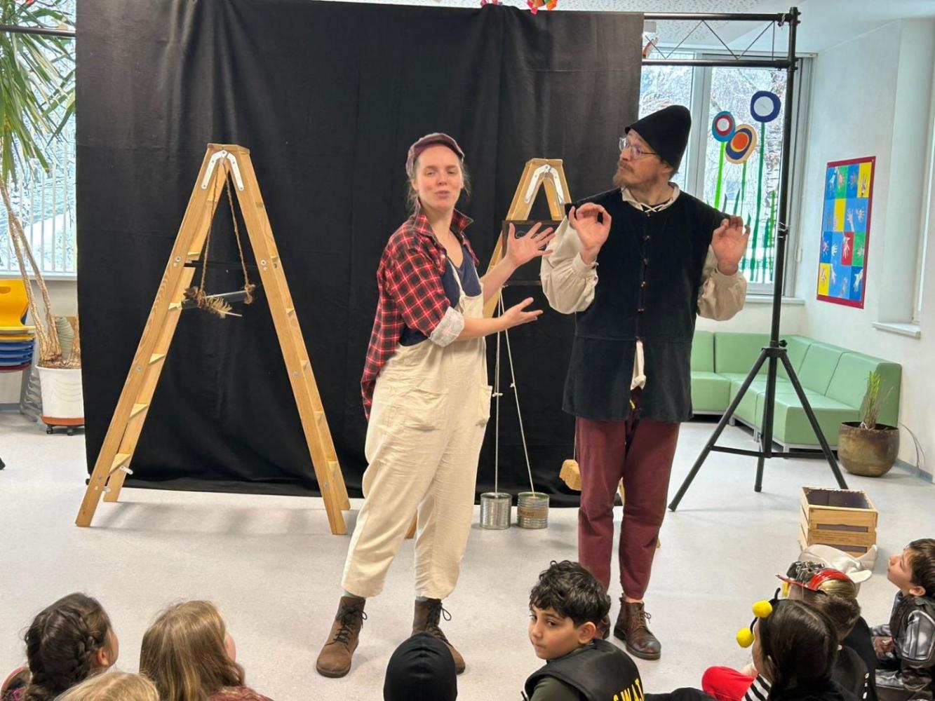 Heute, kurz vor unserer Faschingsfeier, besuchten uns Sophia Lechner und Christopher Robin Göpfert mit ihrer Erzähltheater Aufführung "Die Schildbürgerin". Sie erzählten gekonnt von unterschiedlichsten Begebenheiten im Dorf Schilda und fesselten die Kinder damit gekonnt. Wir bedanken uns an dieser Stelle für die gelungen Aufführung.