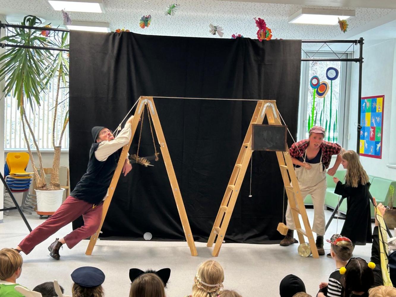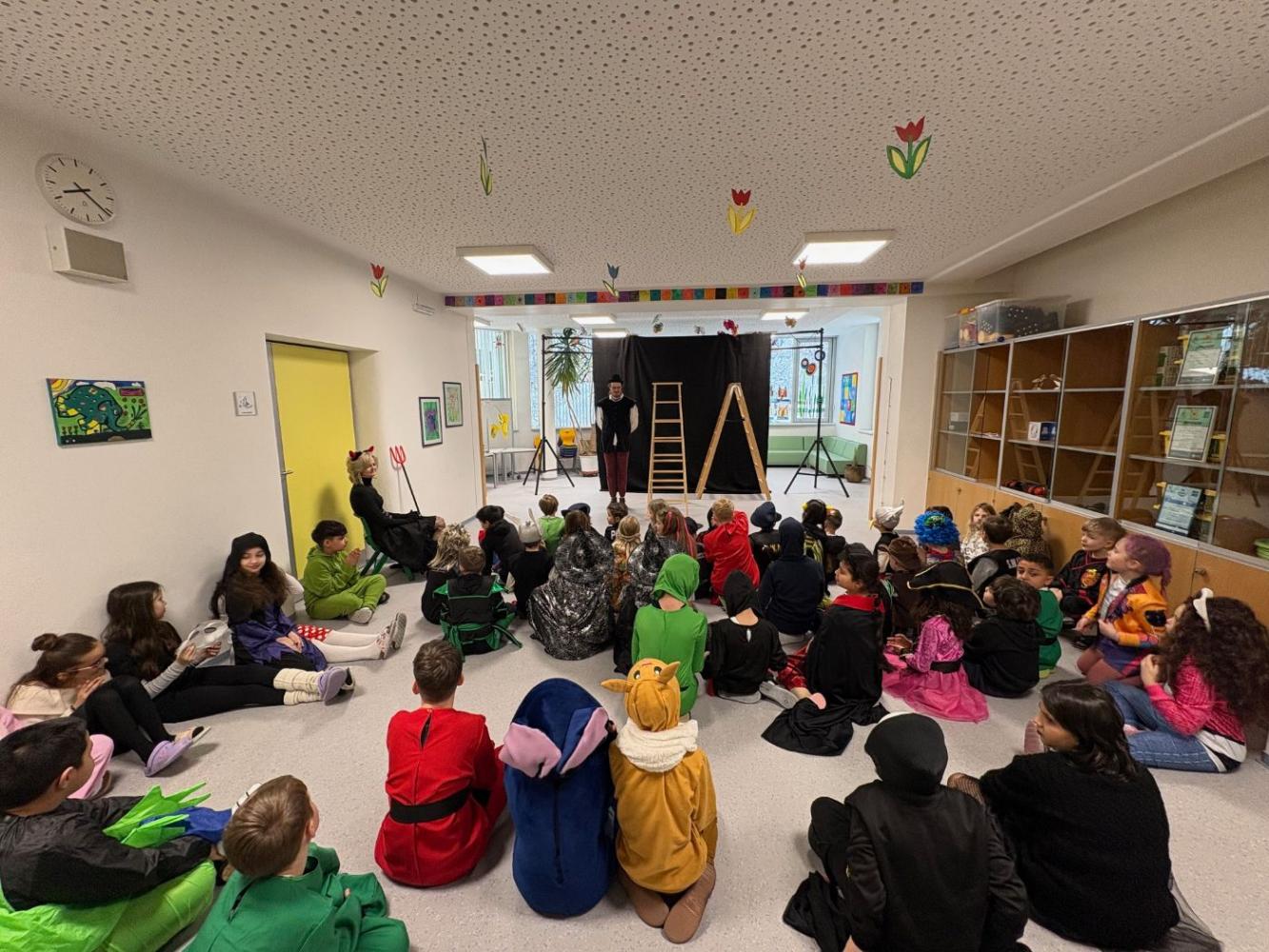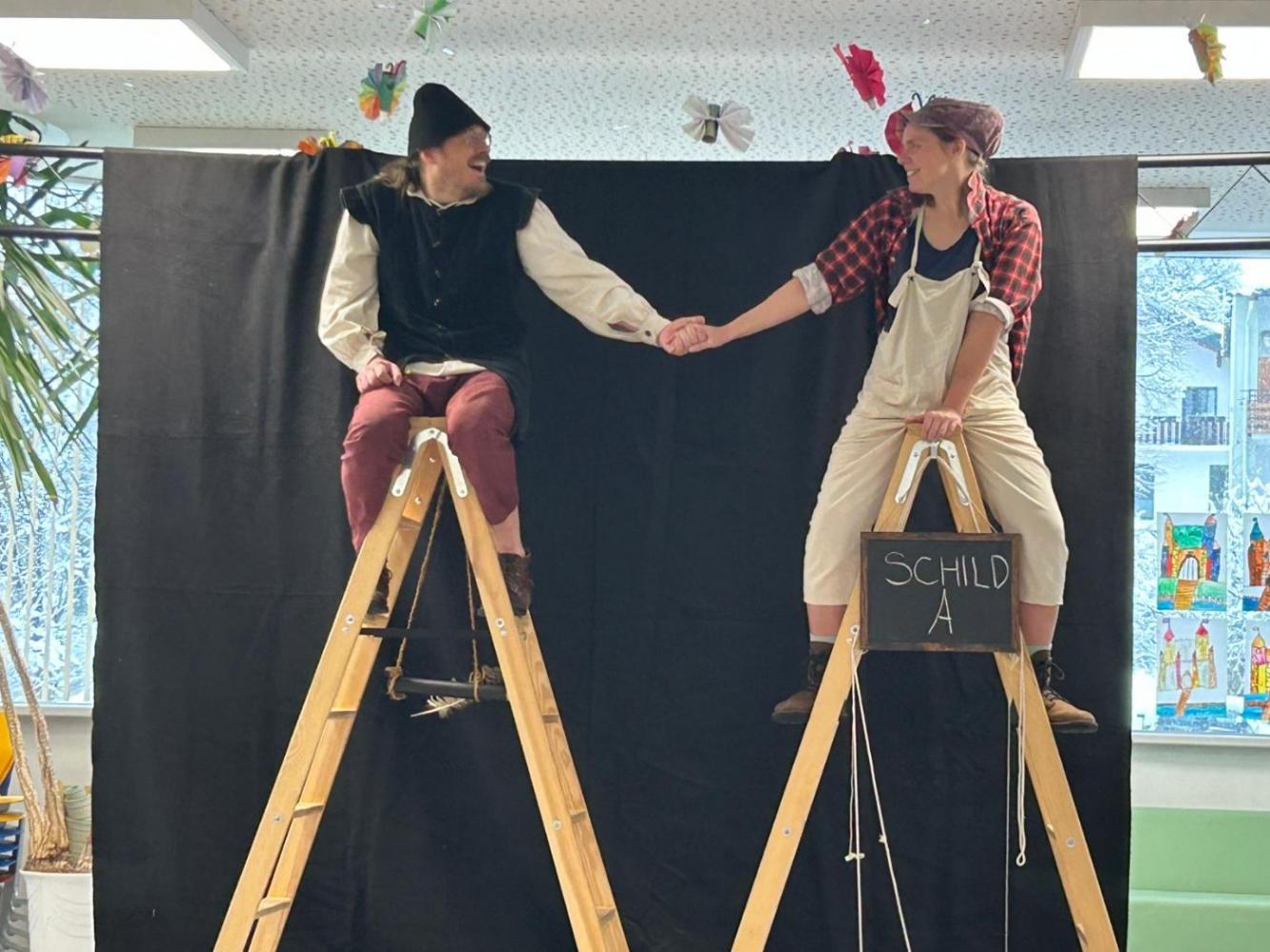 Heute, kurz vor unserer Faschingsfeier, besuchten uns Sophia Lechner und Christopher Robin Göpfert mit ihrer Erzähltheater Aufführung "Die Schildbürgerin". Sie erzählten gekonnt von unterschiedlichsten Begebenheiten im Dorf Schilda und fesselten die Kinder damit gekonnt. Wir bedanken uns an dieser Stelle für die gelungen Aufführung.