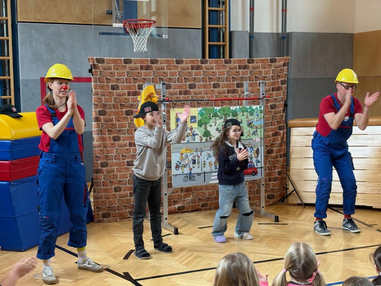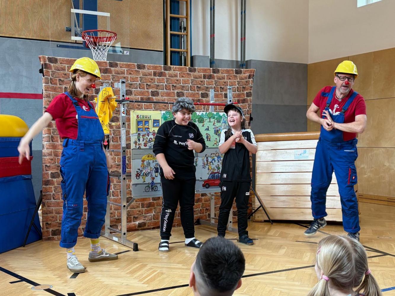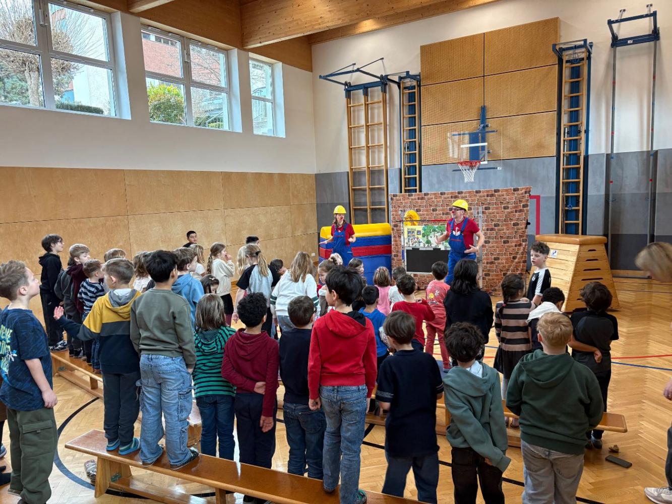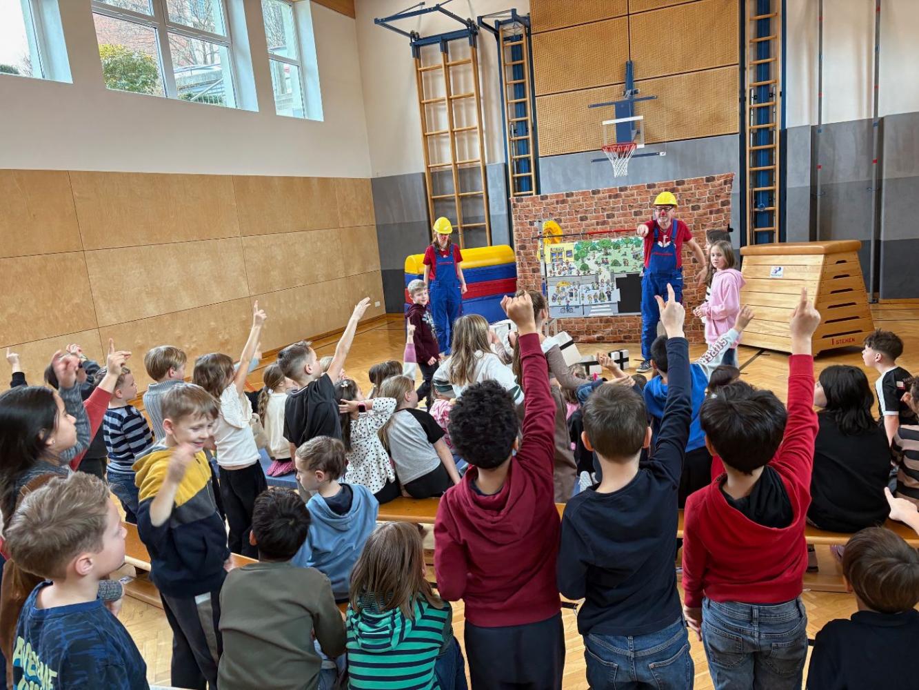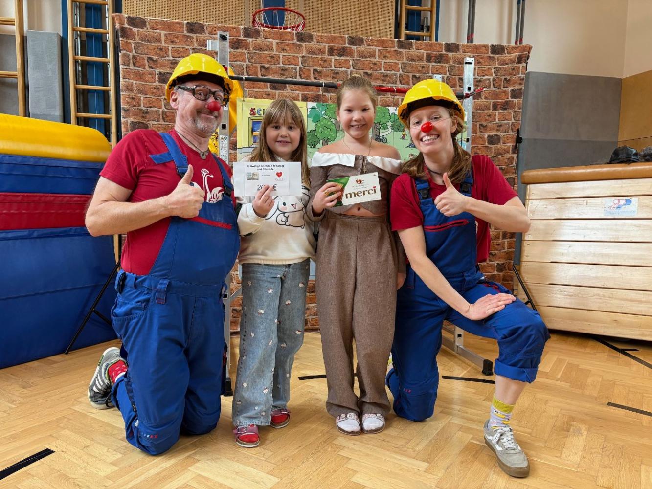 Unter dem Motto „Eine Hand voll Mut“ erlebten die Kinder eine sehr gelungene und berührende Aufführung zum Mitmachen. Gemeinsam wurde gelacht, gelernt und vor allem: geholfen mit MUT. Dank der großartigen Unterstützung aller Kinder und Eltern konnten Spenden in Höhe von 200 € gesammelt und an den Verein übergeben werden.