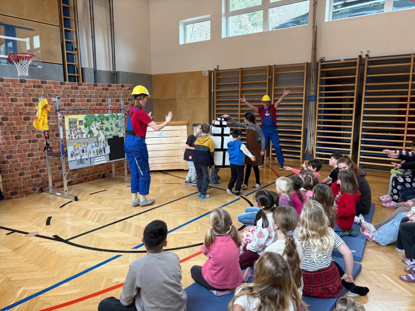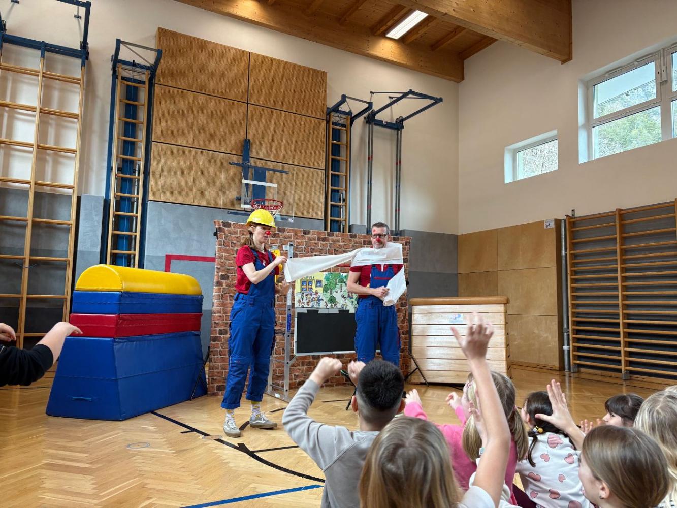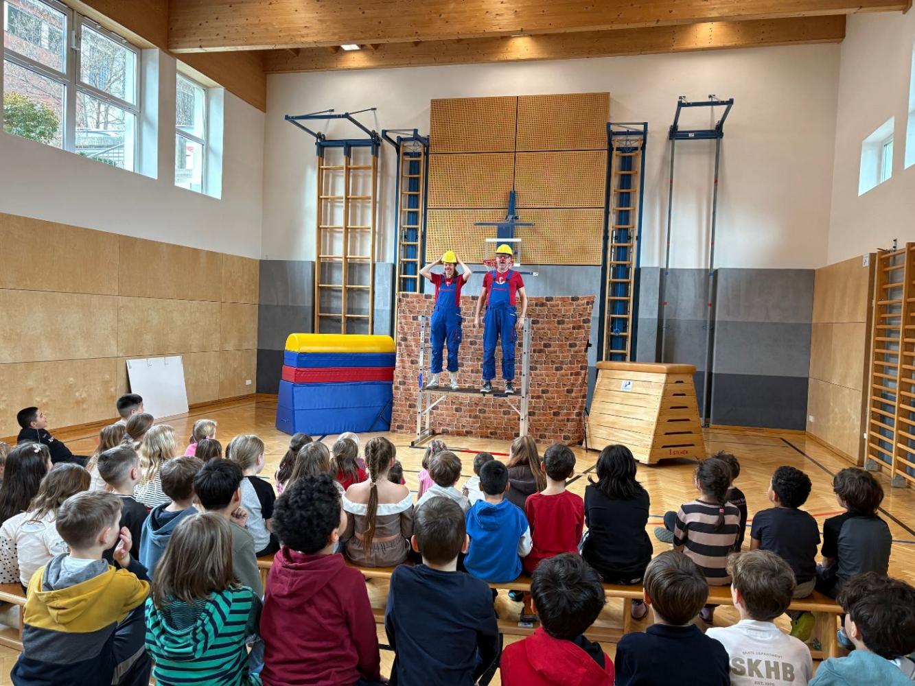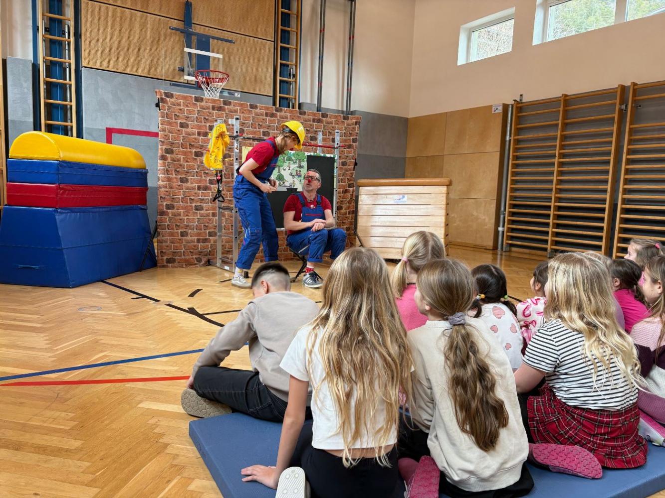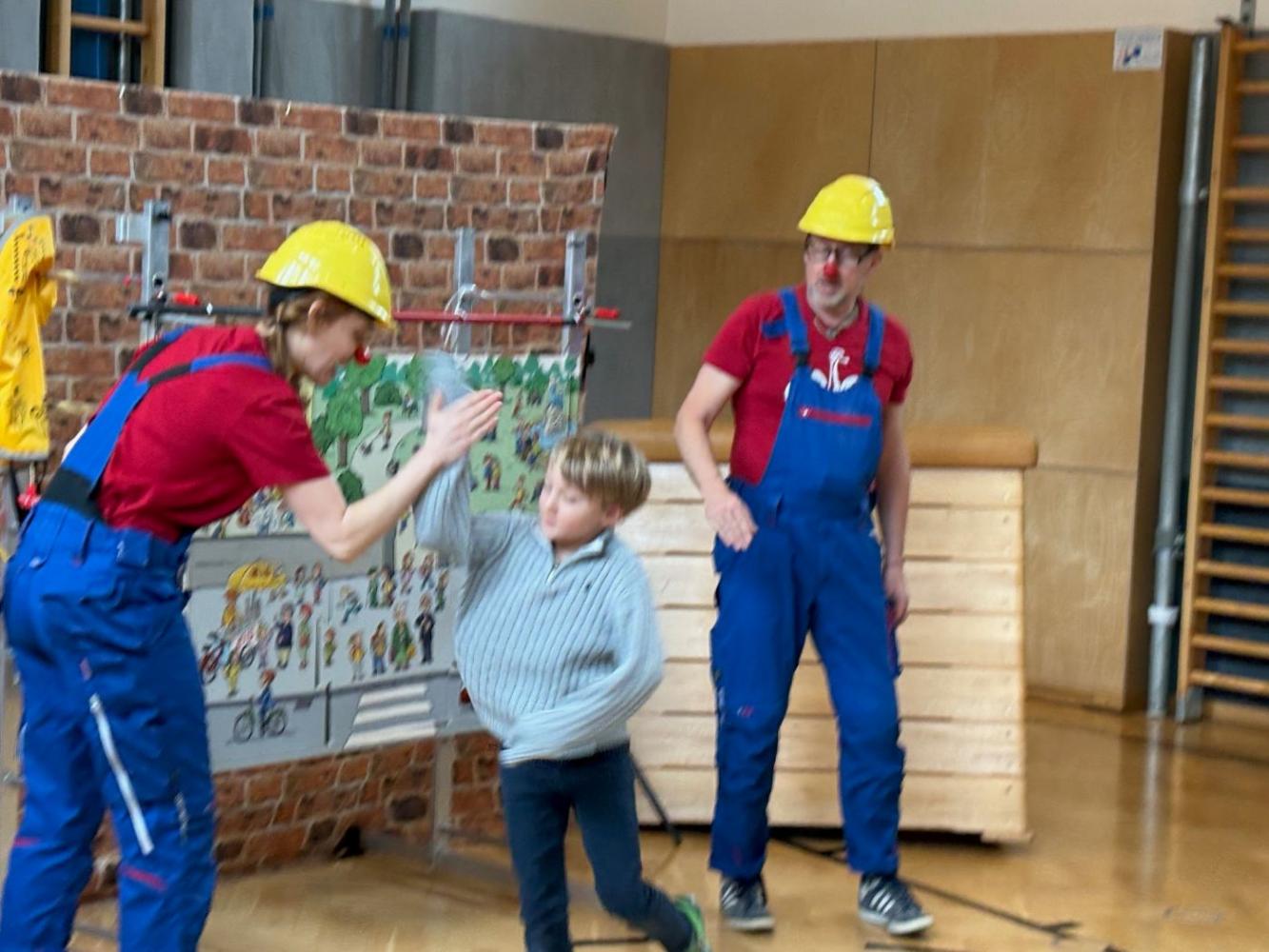 Unter dem Motto „Eine Hand voll Mut“ erlebten die Kinder eine sehr gelungene und berührende Aufführung zum Mitmachen. Gemeinsam wurde gelacht, gelernt und vor allem: geholfen mit MUT. Dank der großartigen Unterstützung aller Kinder und Eltern konnten Spenden in Höhe von 200 € gesammelt und an den Verein übergeben werden.