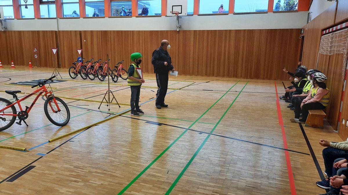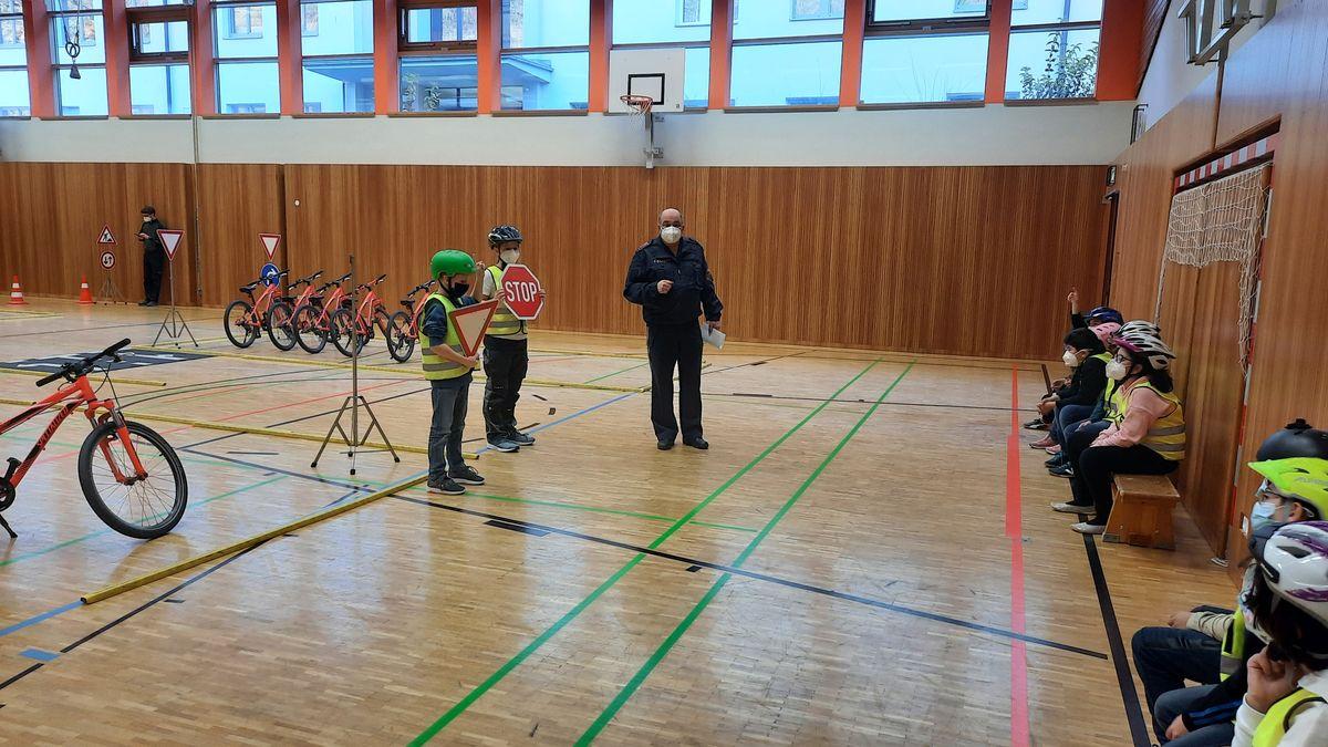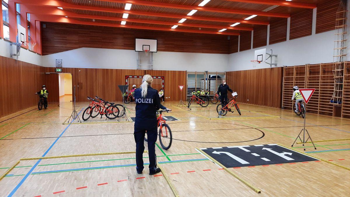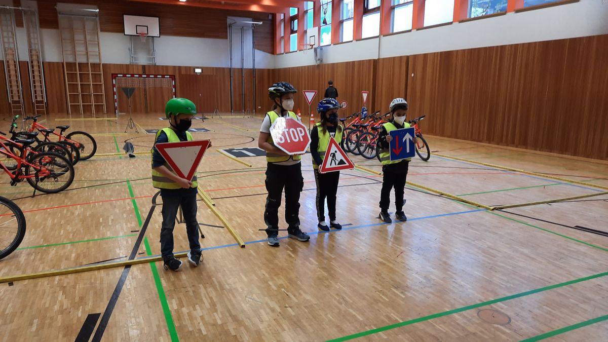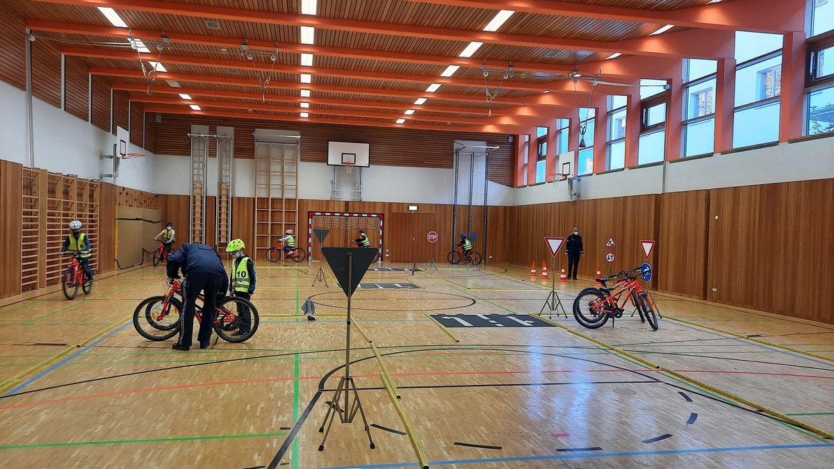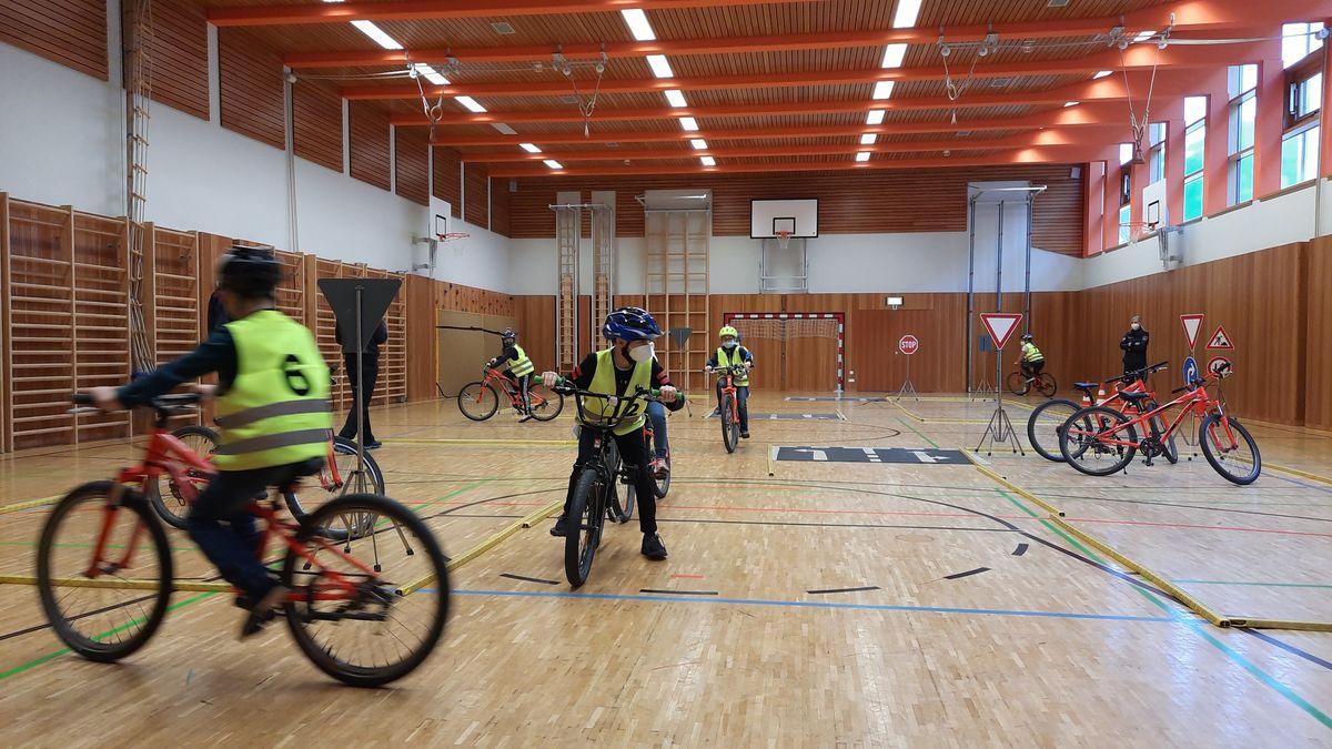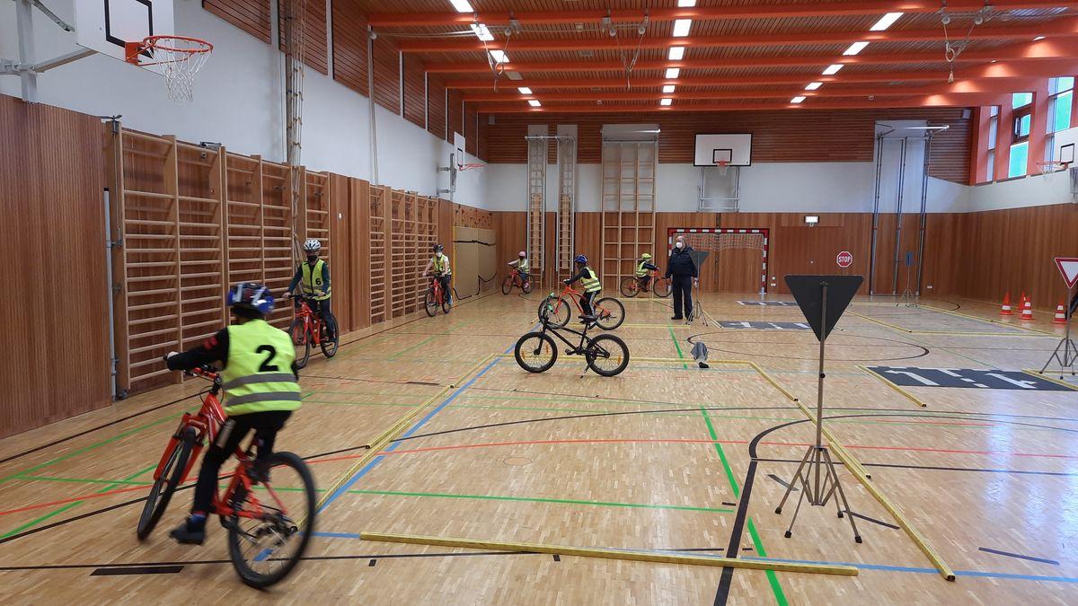 Am Mittwoch, den 24. November fand - heuer unter besonderen Bedingungen - die erste Übungseinheit zur Radfahrprüfung statt. Im Turnsaal der Volksschule Bruggen konnten die Kinder nach einer kurzen Einführung durch die Polizei ihre Übungsrunden drehen. Dabei konnten sie das Einordnen mit Handzeichen, die Begegnungsregel oder das richtige Abbiegen üben.