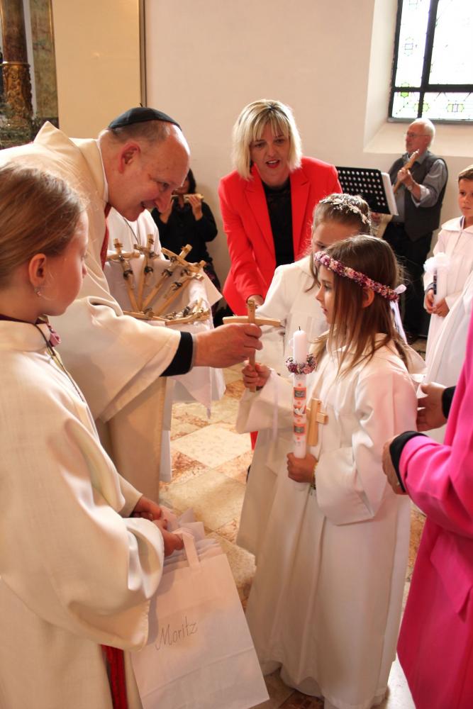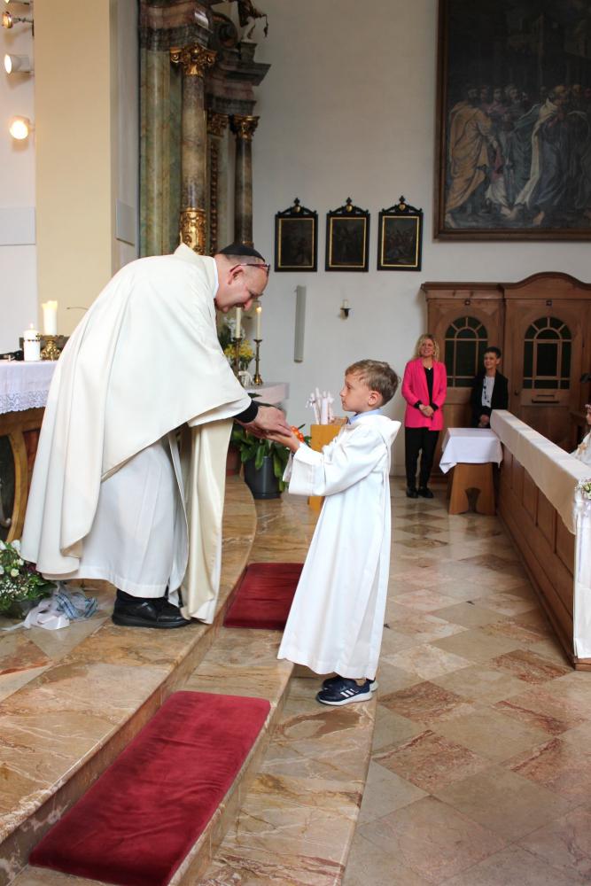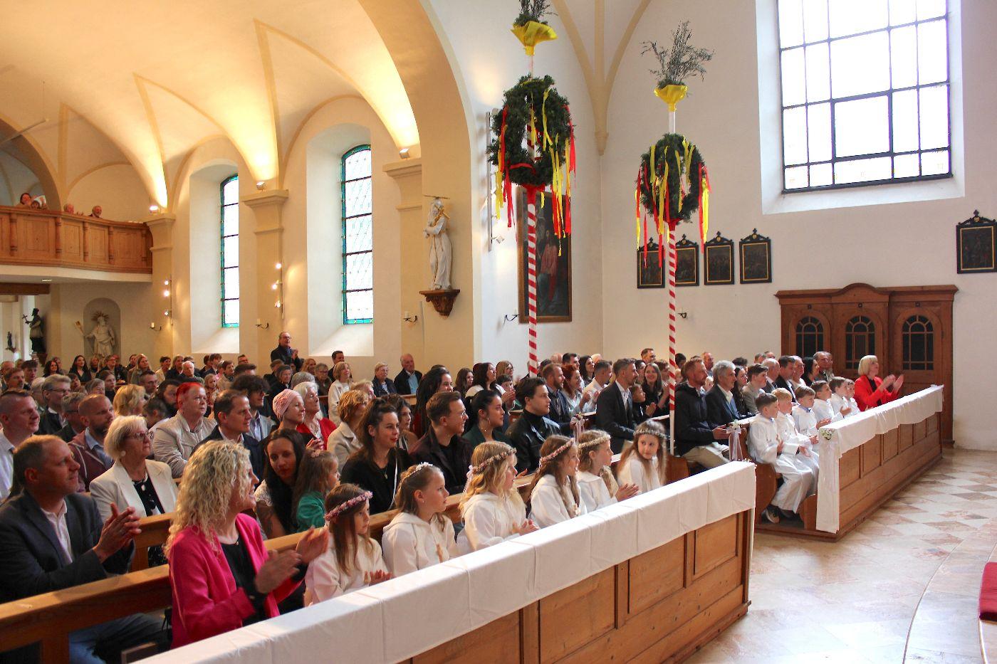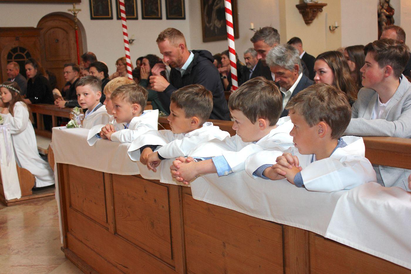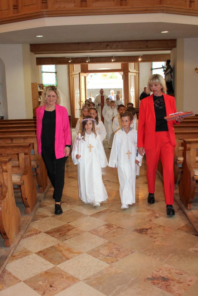 Am 4. Mai fand die diesjährige Erstkommunion unserer Schülerinnen und Schüler statt. Den festliche Einzug umrahmte die Musikkapelle Perjen gekonnt. Die Kinder wurden dabei von ihren Familien und Freunden begleitet, die sich zahlreich versammelt hatten, um diesen besonderen Tag zu feiern. Der Chor "Chorioso" beeindruckte mit seinen harmonischen Klängen und trug maßgeblich zur festlichen Stimmung während der Messe bei. Im Anschluss gab es eine Agape, bei der die Kinder ihre Freude und Aufregung, die man ihnen während der Messe nicht anmerken konnte, über ihre Erstkommunion teilen konnten. Es war ein Fest voller Freude und Gemeinschaft, das allen Beteiligten hoffentlich noch lange in guter Erinnerung bleiben wird.