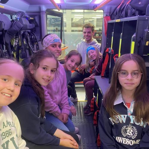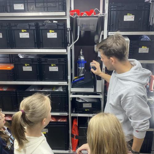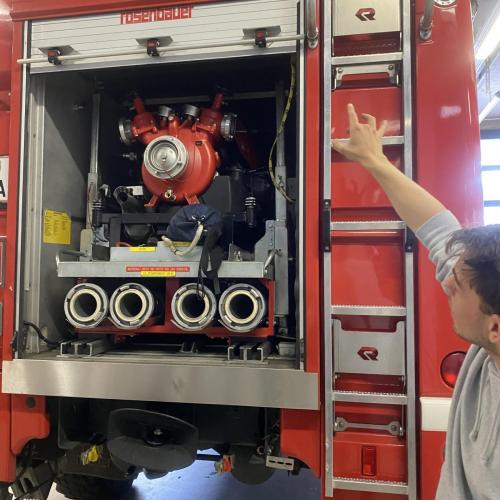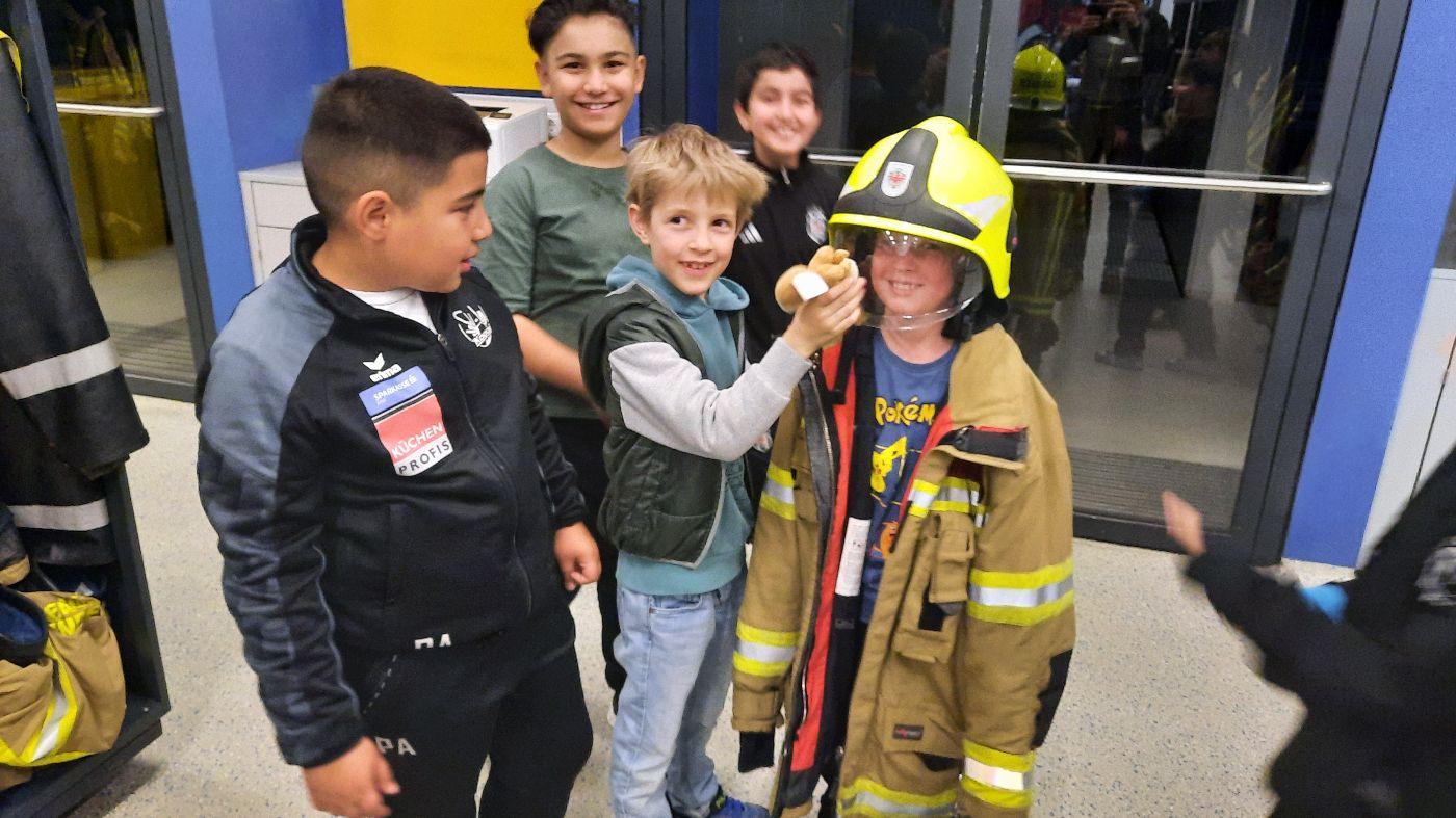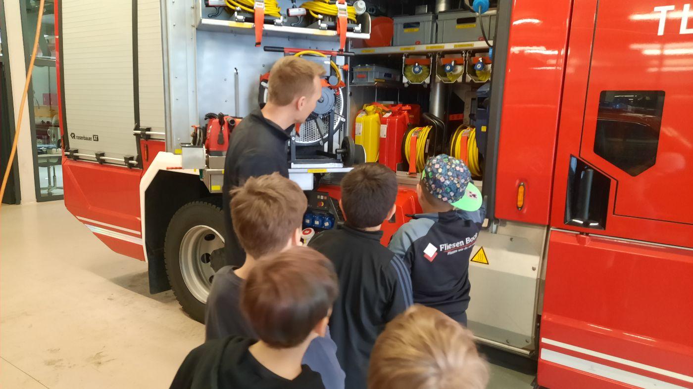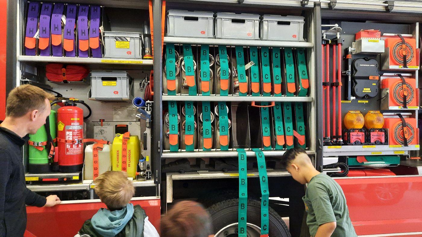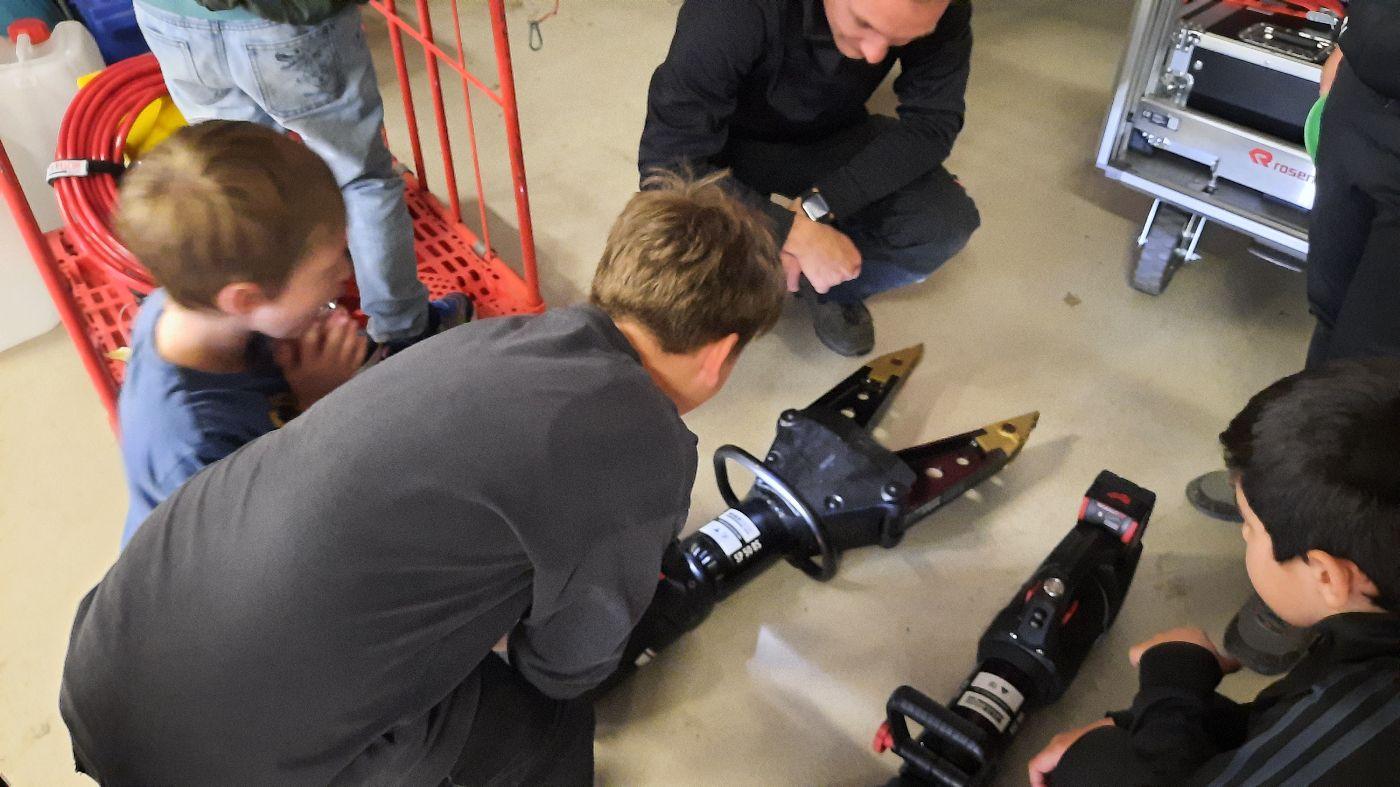 Um 10.00 Uhr wurden wir von Florian Stecher (Kommandant - Stellvertreter) und Jakob Thaler (Jugendarbeit) vor dem Eingang erwartet. Nach einer kurzen Einführung im Lehrsaal ging es weiter in die Einsatzzentrale. Gleich darauf wechselten wir in den unteren Stock zu den Spinden. Dort schlüpften die Kinder in die schweren Einsatzjacken und die Helme. Nun durften wir endlich zu den Einsatzfahrzeugen. Dort gab es vielen Geräte, Kupplungen, Schläuche und Werkzeuge zu bestaunen. Vieles durfte angefasst, gehoben.... und auch wieder verräumt werden. Natürlich durften sich die Kinder auch in die Fahrzeuge setzen und sich wie ein Feuerwehrmann/eine Feuerwehrfrau fühlen. Es wurde auf jede Frage der Kinder eingegangen. Zum Schluss kam das Highlight: die Drehleiter wurde in den Hof gefahren. Alle Kinder wagten sich in den Korb und fuhren bis zu 30 Meter in die Höhe.