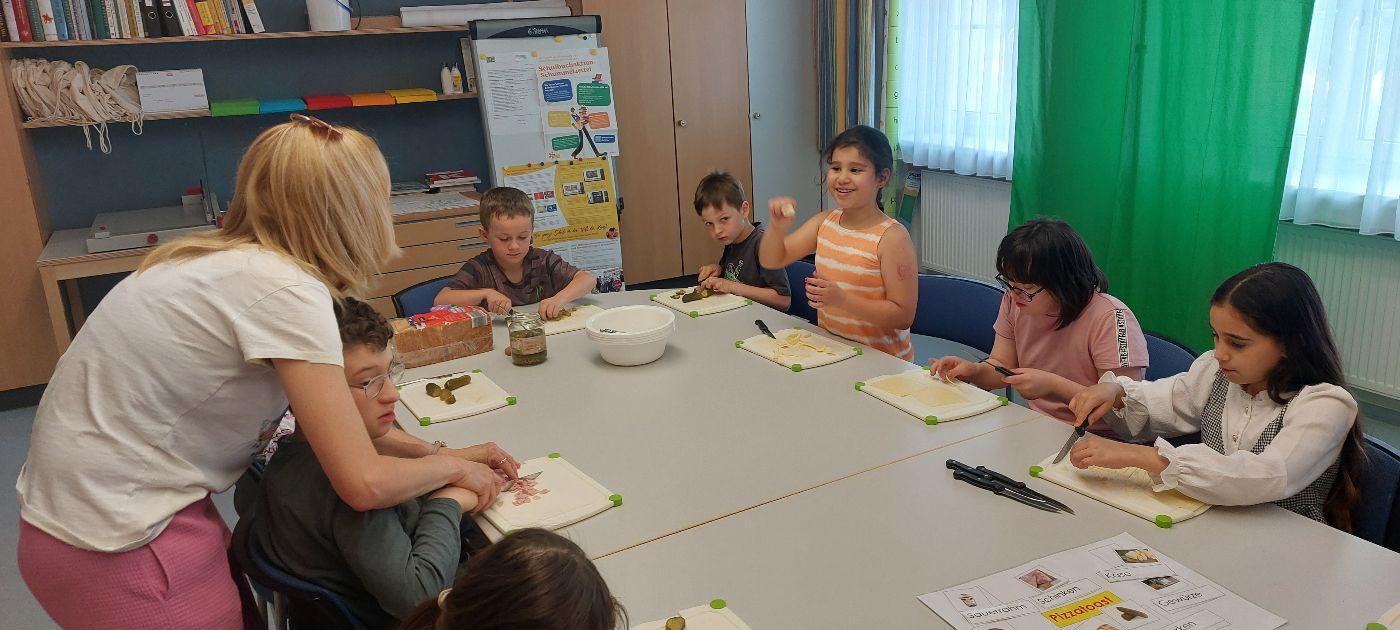 Freundschaft verbindet von Carla Schatz 11. Juni 2025 Schuljahr 2024/2025 Am Mittwoch, den 11. Juni, besuchte uns unsere Partnerklasse der ASO Zams. Die Freude war groß und zusammen wurden Pizzabrote zubereitet. Sie schmeckten fantastisch! Danke für den Besuch.
