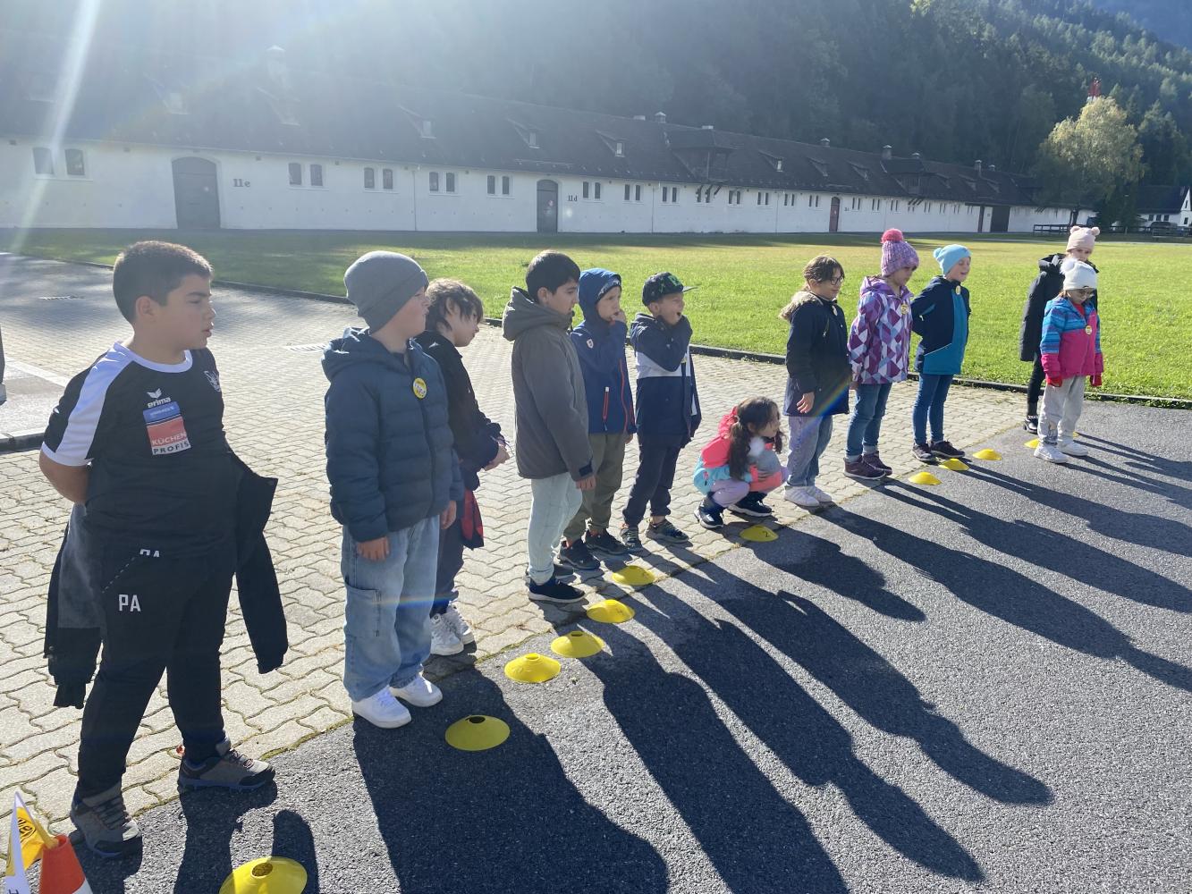 Zuerst liefen die Kinder miteinander um die Wette und sollten dabei plötzlich stehen bleiben. Schon diese Übung zeigte, wie schwer das Bremsen ist.