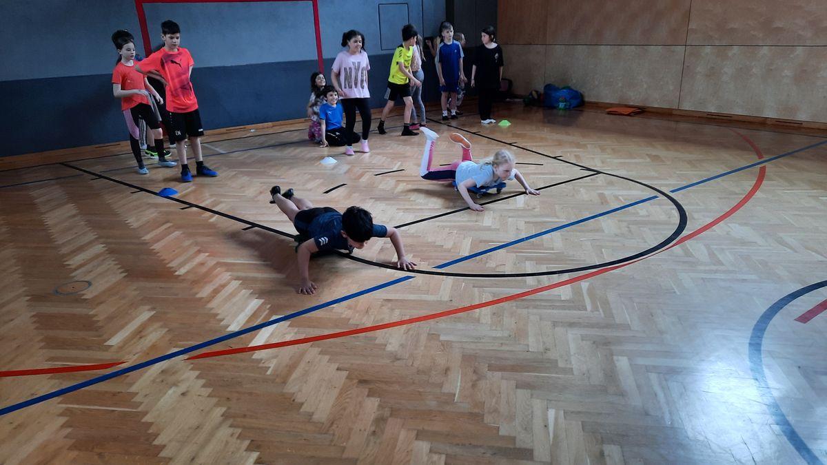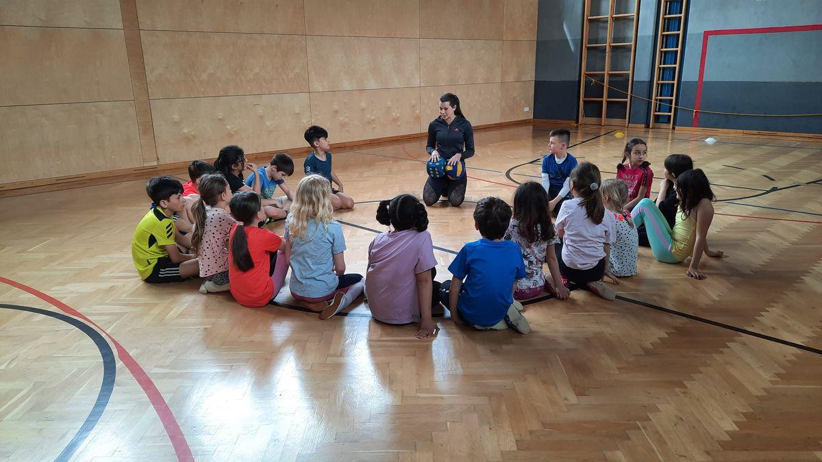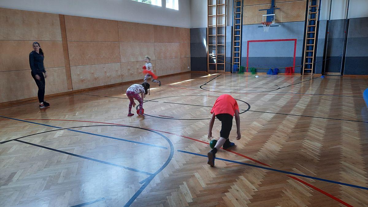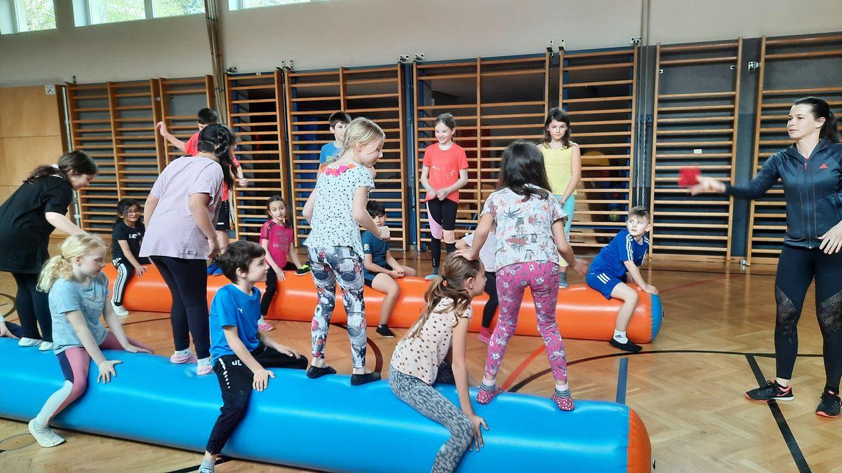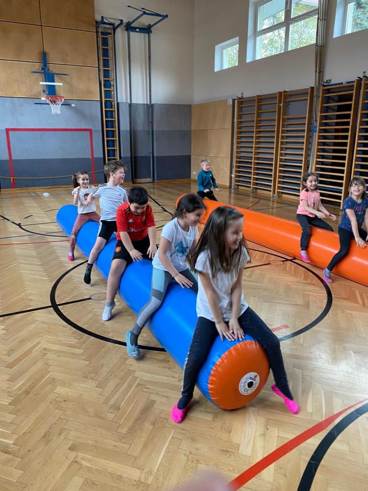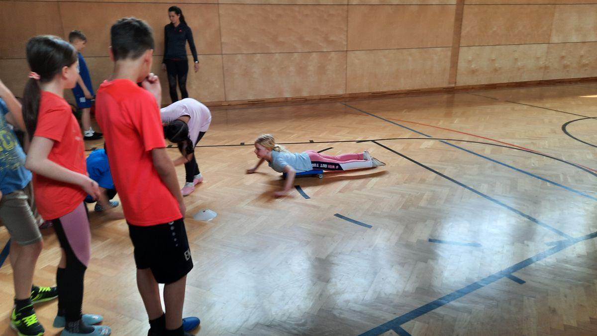 Am Freitag, den 14. April besuchte uns Hopsi Hopper mit Bianca. Die Kinder absolvierten Staffelläufe mit Rollbrettern und Teppichfliesen und mussten Tücher und Reissäckchen transportieren. Der Abschluss bildeten Geschicklichkeitsübungen auf der großen Rolle. Es war wieder eine coole Turnstunde.