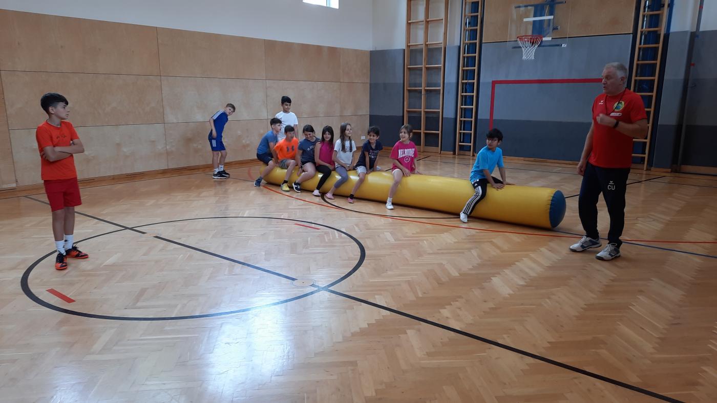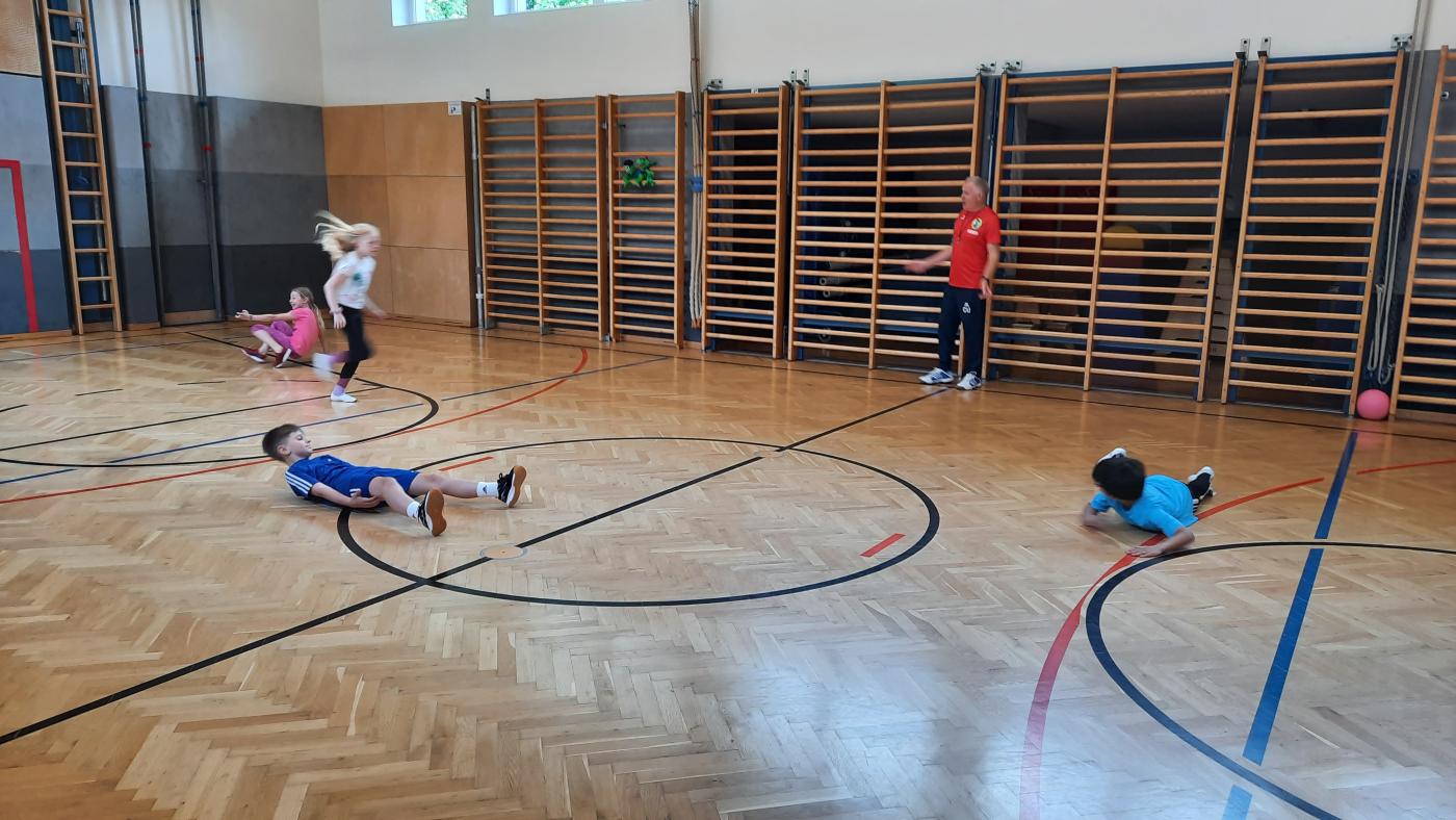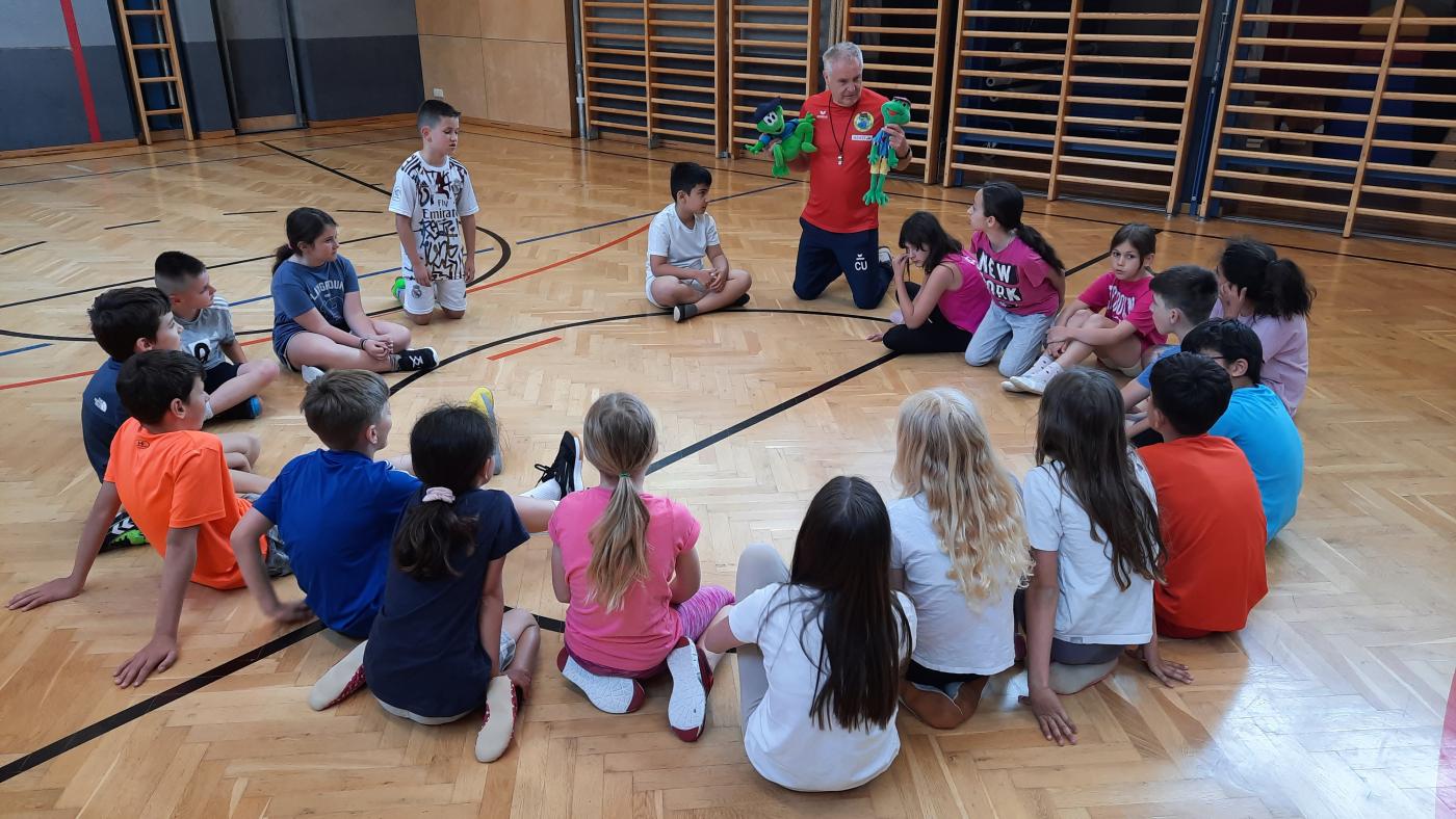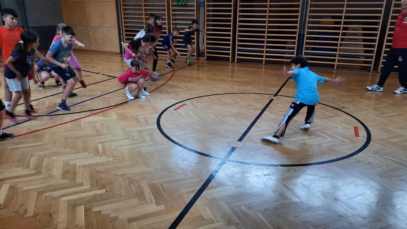 Am Donnerstag, den 23. Mai, besuchte uns Christian mit Hopsi Hopper und Hubsi Hopper. Aufgewärmt wurde mit einem Konzentrationsspiel. Im Anschluss daran blickten die Kinder in einen Spiegel und mussten alle Bewegungen des "Spiegels" nachmachen. Zum Abschluss kam noch die Rolle zum Einsatz.