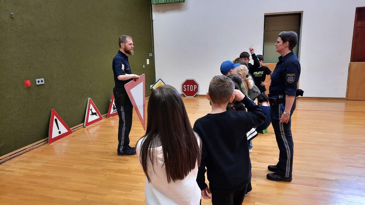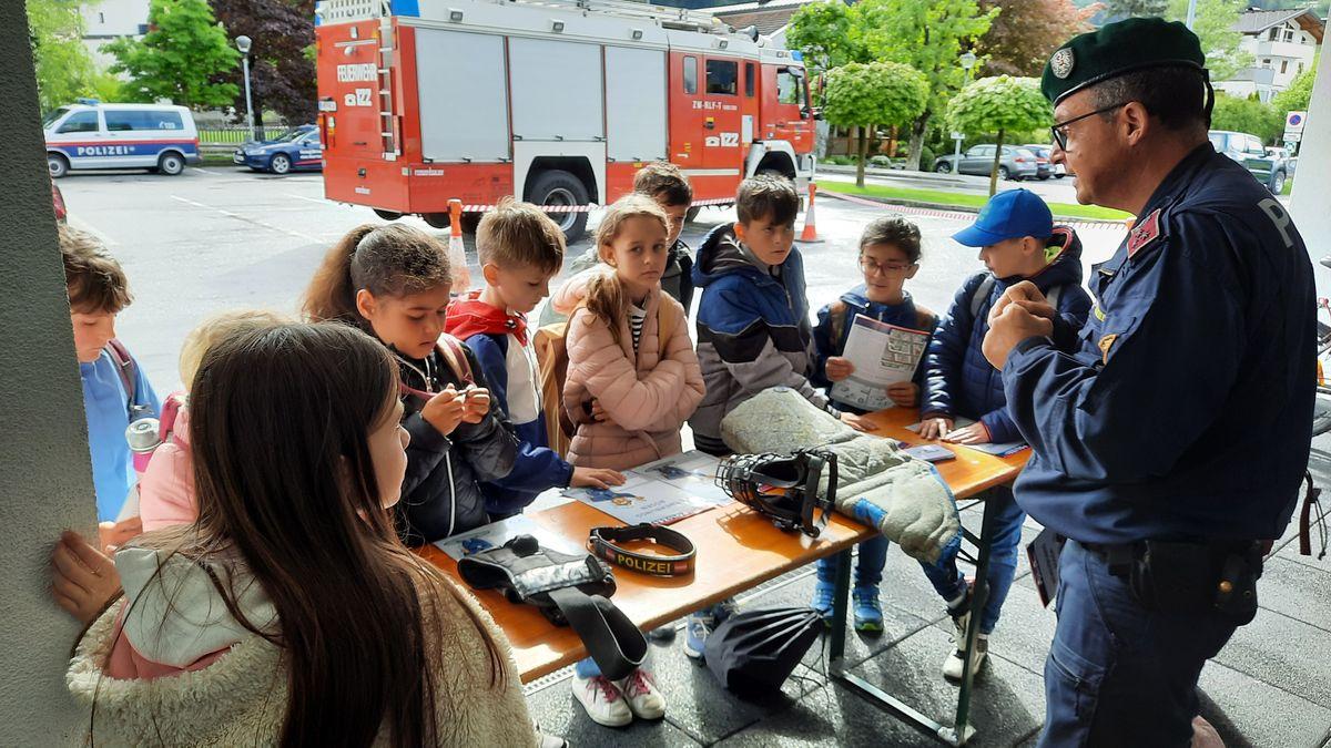 Am Dienstag, den 9. Mai besuchten wir die Kinderpolizeiveranstaltung an der Mittelschule in Zams. In fünf Stationen erfuhren die Kinder viel über die Arbeit der Kriminalpolizei und der HundeführerInnen aber auch Verkehrszeichen, Verhalten im Straßenverkehr mit Fahrrad, Scooter, ... und der tote Winkel wurde uns praktisch vermittelt.