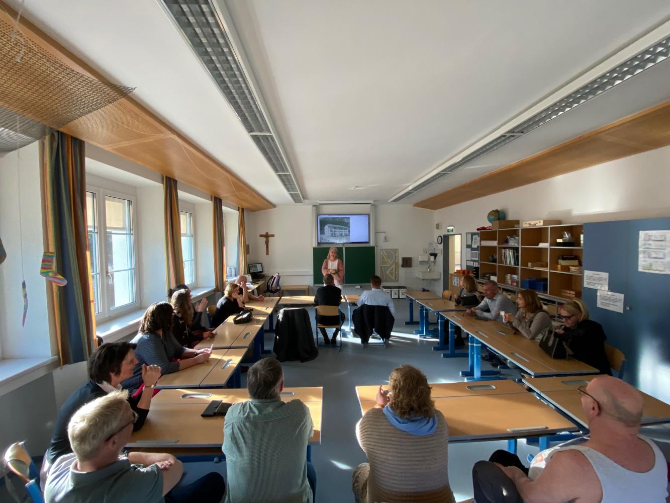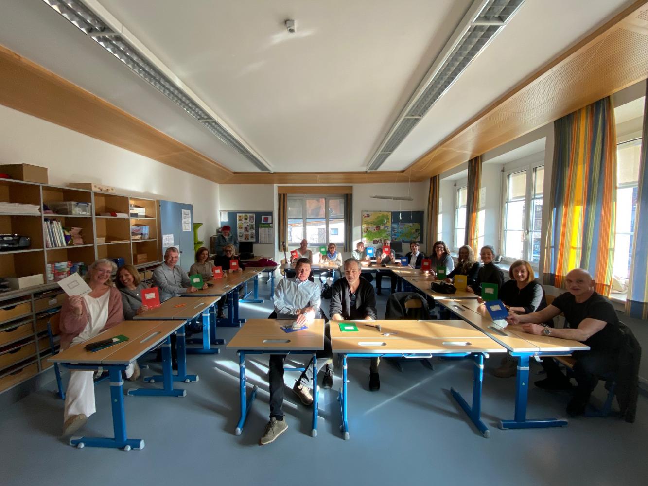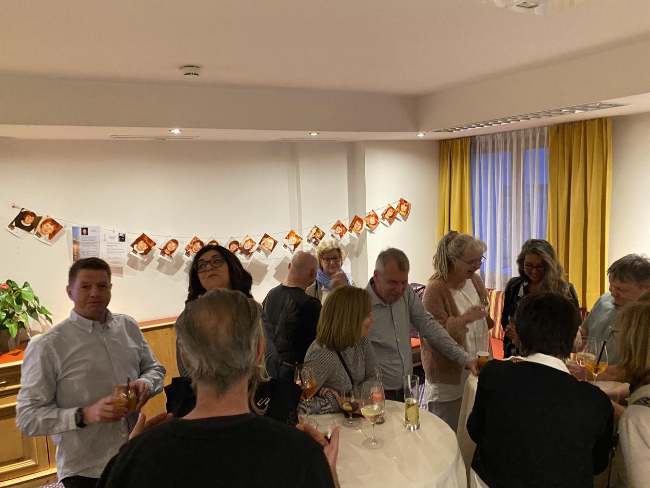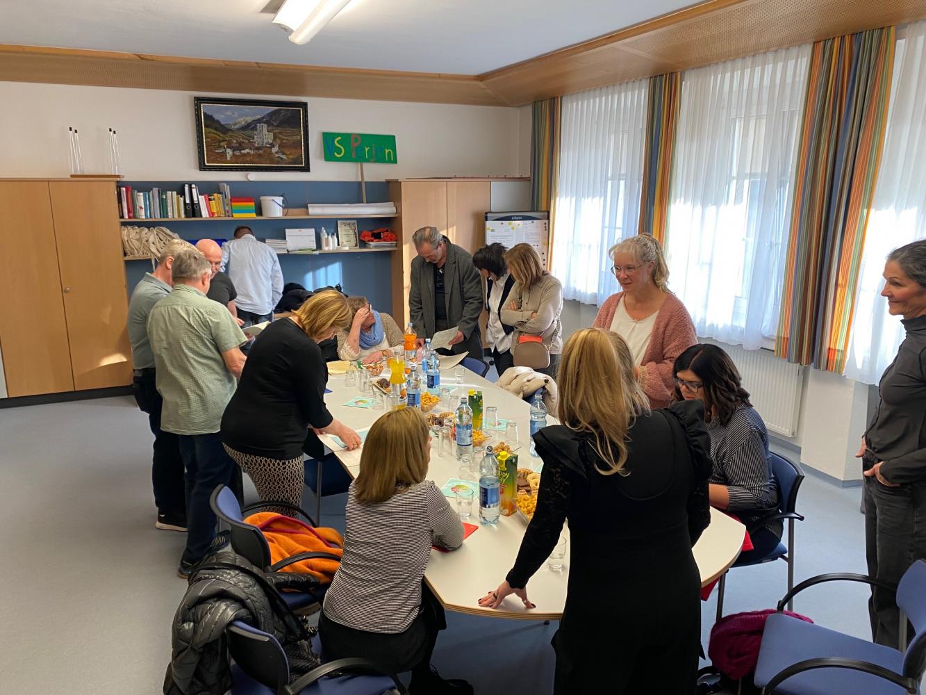 Zum Abschluss versammelten sich alle im Konferenzzimmer der Schule, wo bei Kaffee und Naschereien weiter geplaudert und gelacht wurde. Auch jene, die nicht mehr oder nicht dabei sein konnten, wurden erwähnt. Es war ein rundum angenehmes Treffen alter Schulfreunde, die im Anschluss daran gemeinsam zu einem Abendessen und gemütlichen Ausklang zum Hotel Enzian weiterzogen.