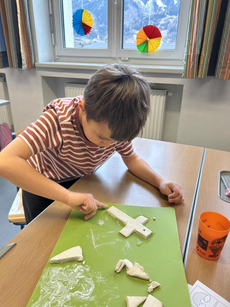 Mit viel Freude und Begeisterung formten die Kinder aus Fimo-Masse ein Kreuz. Das Resultat war beeindruckend: Jedes Kreuz ist ein einzigartiges Kunstwerk, welches die Kinder mit Stolz gestaltet haben. Besonders der Ausblick auf das Bemalen der Kreuze macht die Schüler und Schülerinnen jetzt gespannt - eine wunderbare Gelegenheit, ihre Kreativität weiter auszuleben und gleichzeitig mehr über die Symbolik des Kreuzes zu erfahren.