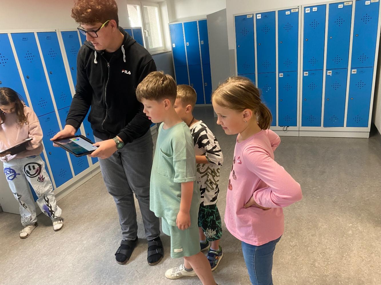 Dort hatte Ladner Michael mit seinen Schülern und Schülerinnen drei spannende Stationen vorbereitet. Die Kinder durften mit den Sphero Bolts einen Hindernisparcours durchlaufen, eine Hülle für einen Haftmagneten am Tablet konstruieren und mit LEGO education Spike ein Fußballtor bauen. Die Kinder arbeiteten an allen Station mit Begeisterung und wurden von den Mittelschülern und Mittelschülerinnen bestens beraten und betreut. Es war ein toller Vormittag, den wir nicht so schnell vergessen werden. Ein großes DANKESCHÖN an alle!!
