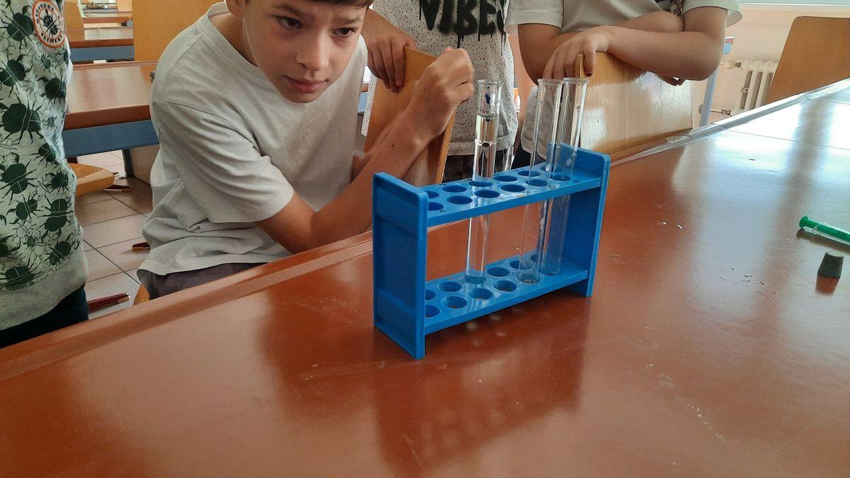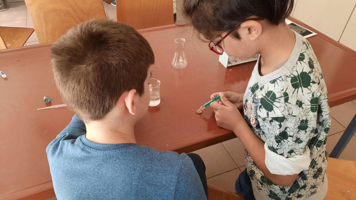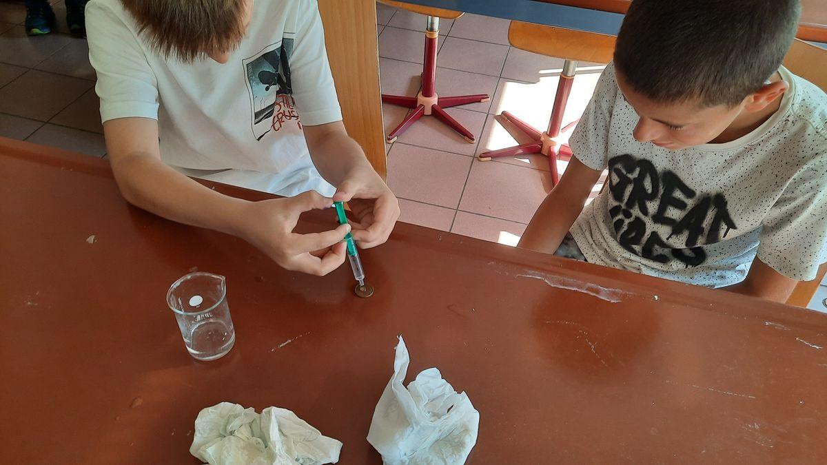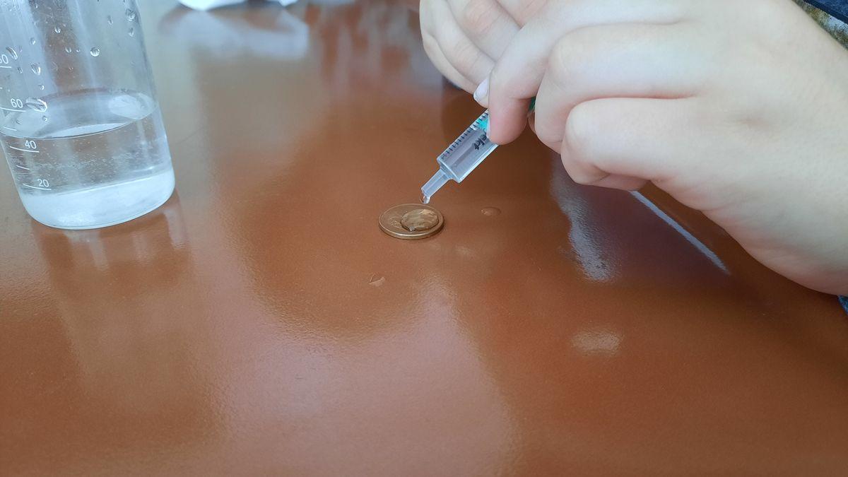 - Im Chemielabor färbten wir Tee um oder überprüften, wie viele Wassertropfen auf eine 5-Cent-Münze geträufelt werden konnten oder ob Wasser und Öl sich mischen lassen.
