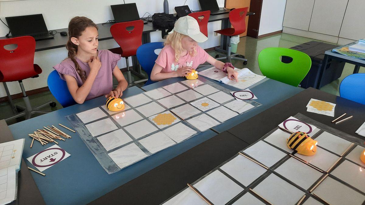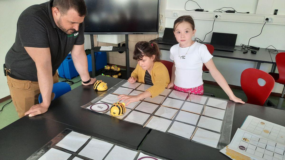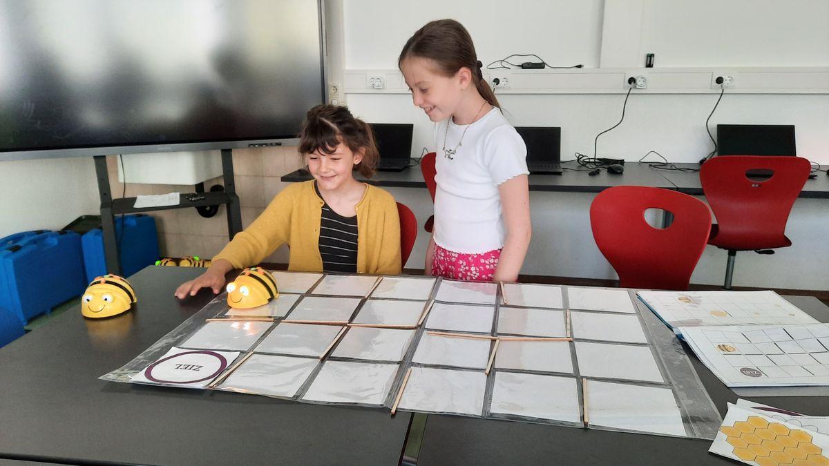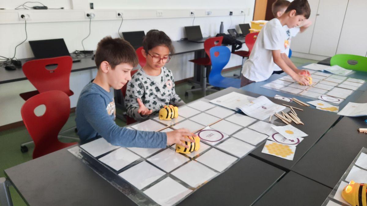 - Im Techlabor arbeiteten und programmierten wir Bee-Bots in verschiedenen Schwierigkeitsstufen.