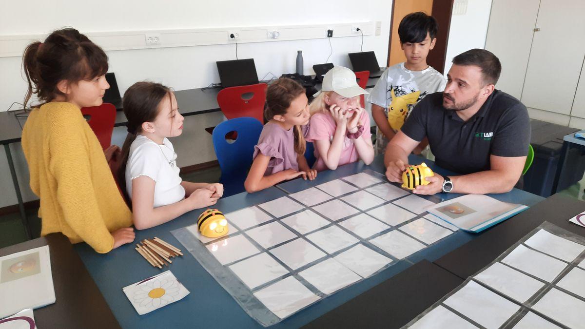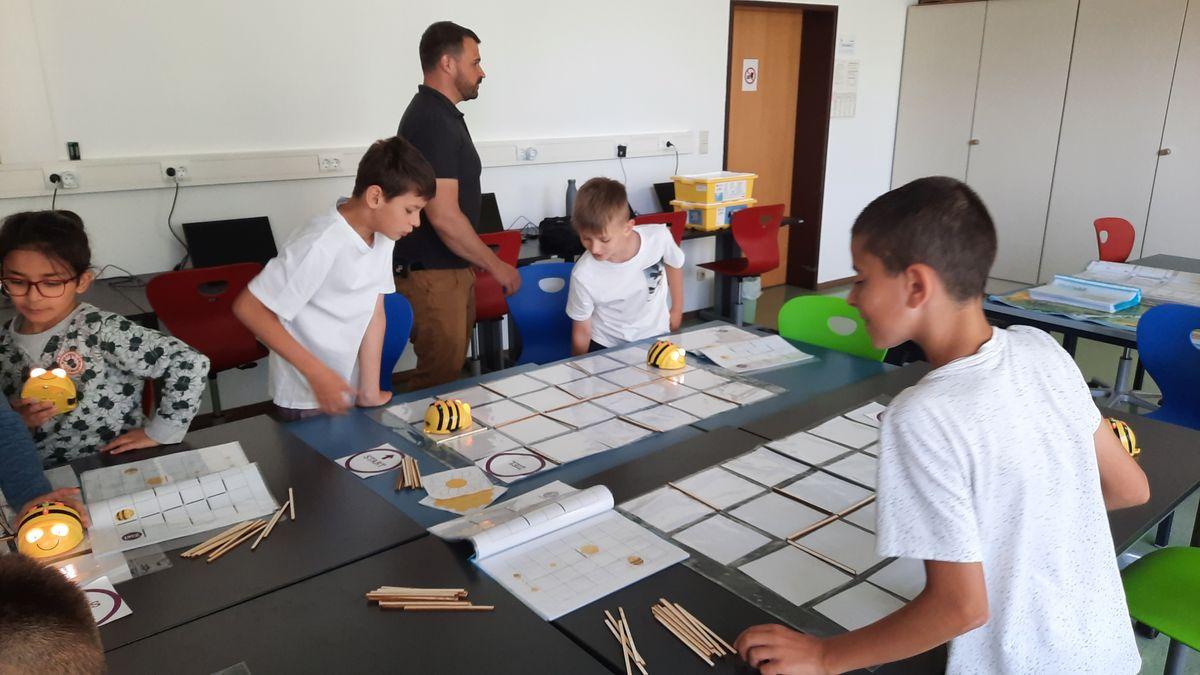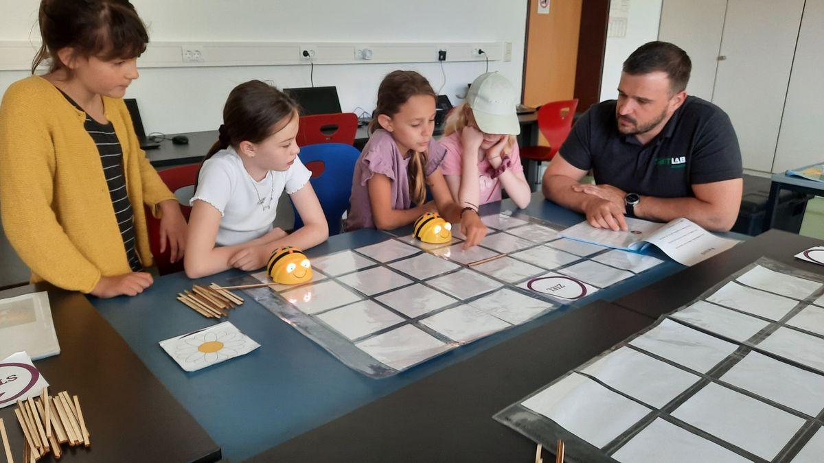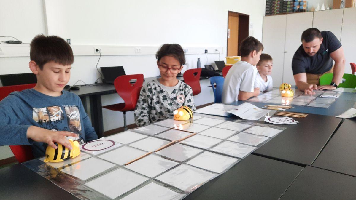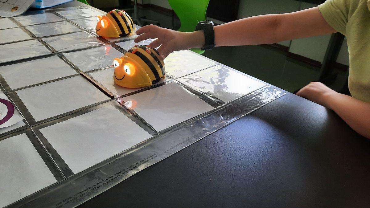- Im Techlabor arbeiteten und programmierten wir Bee-Bots in verschiedenen Schwierigkeitsstufen.