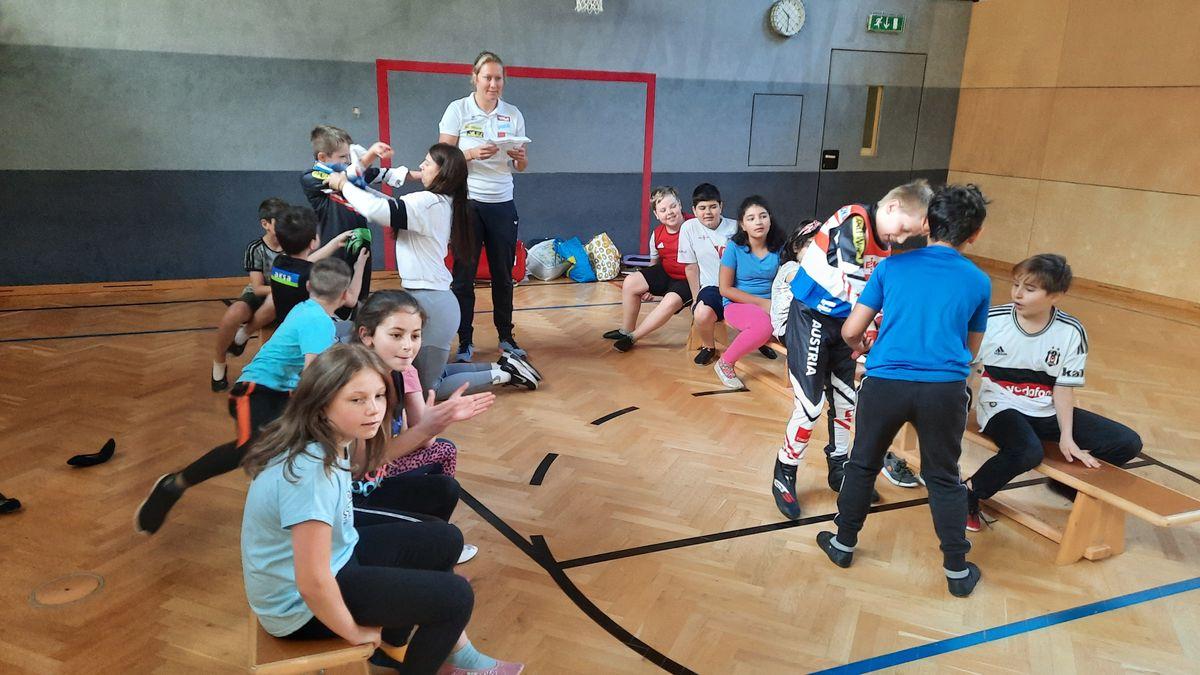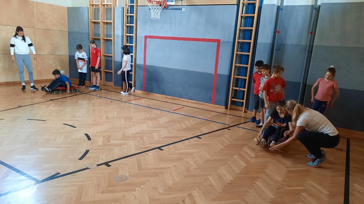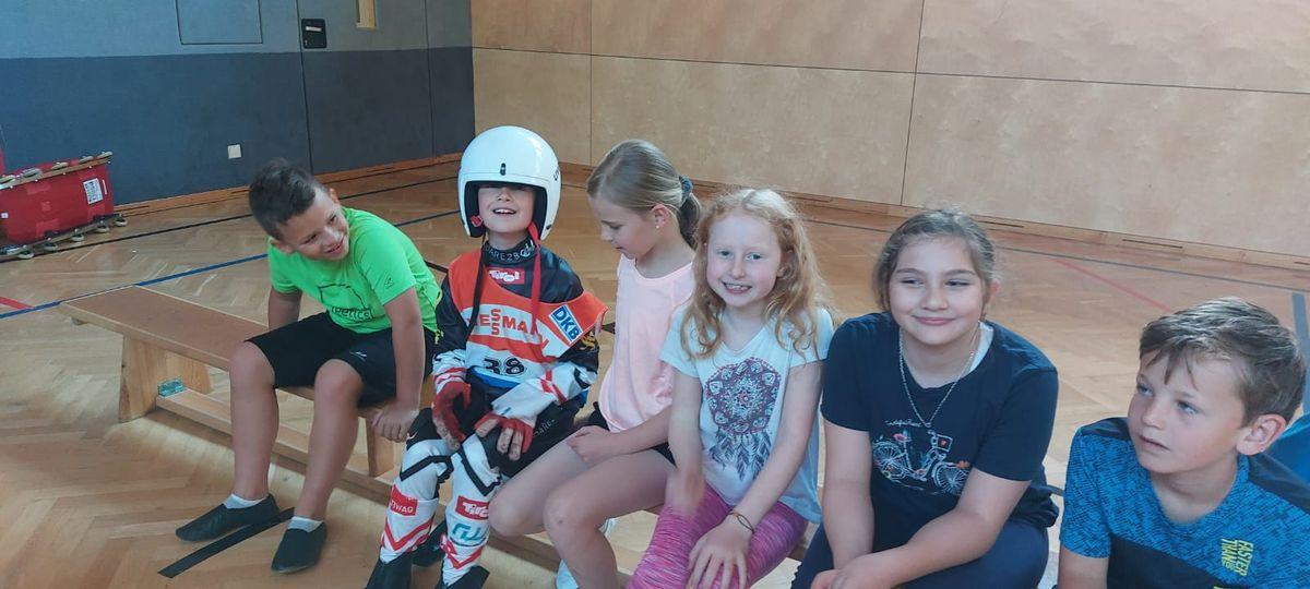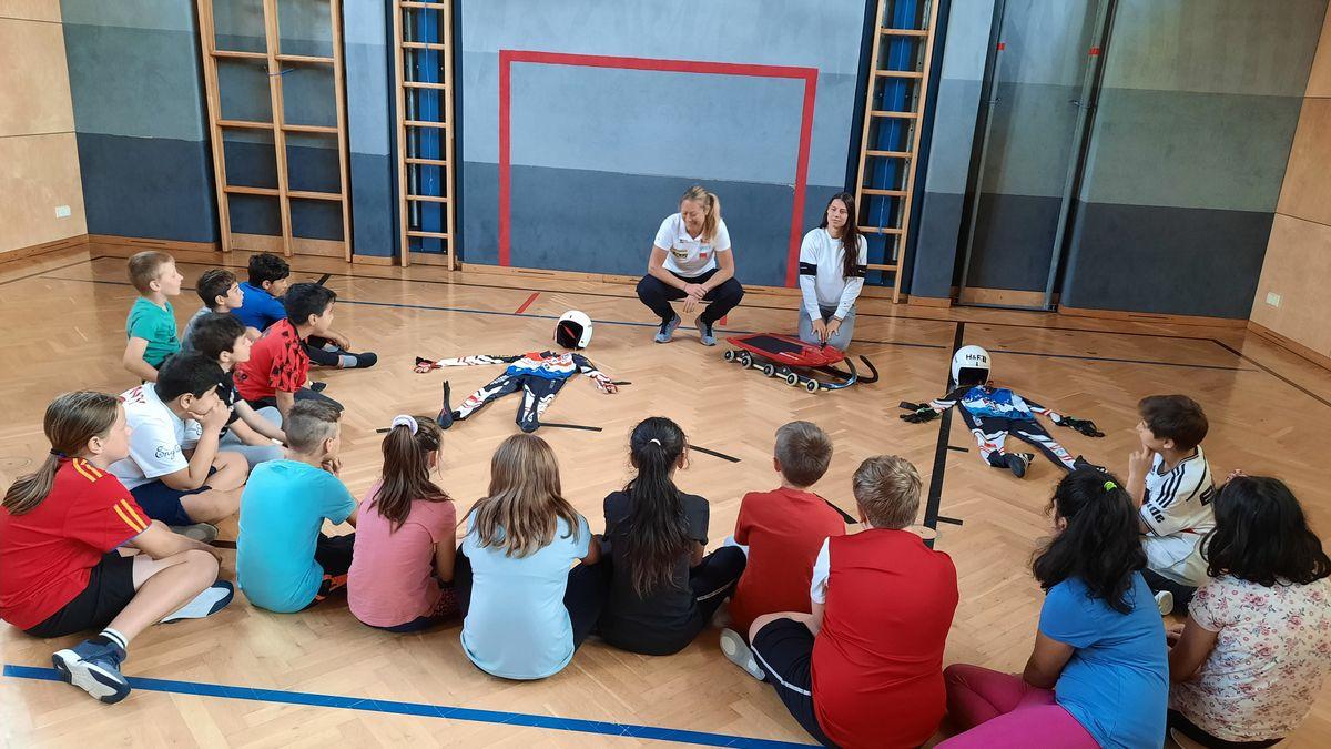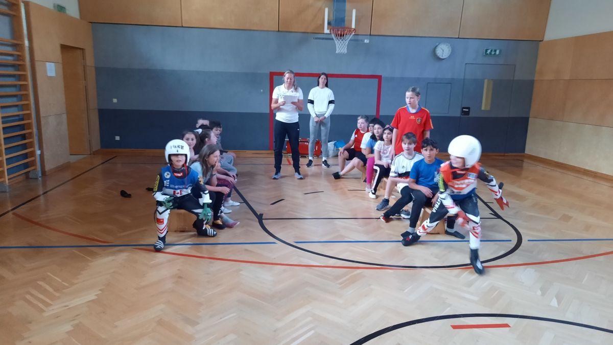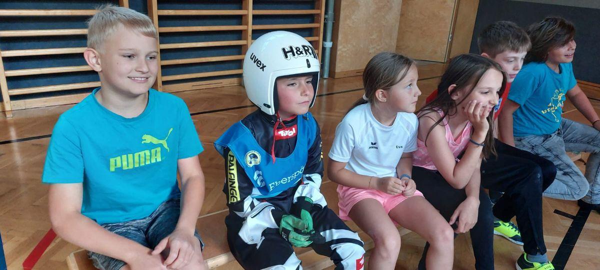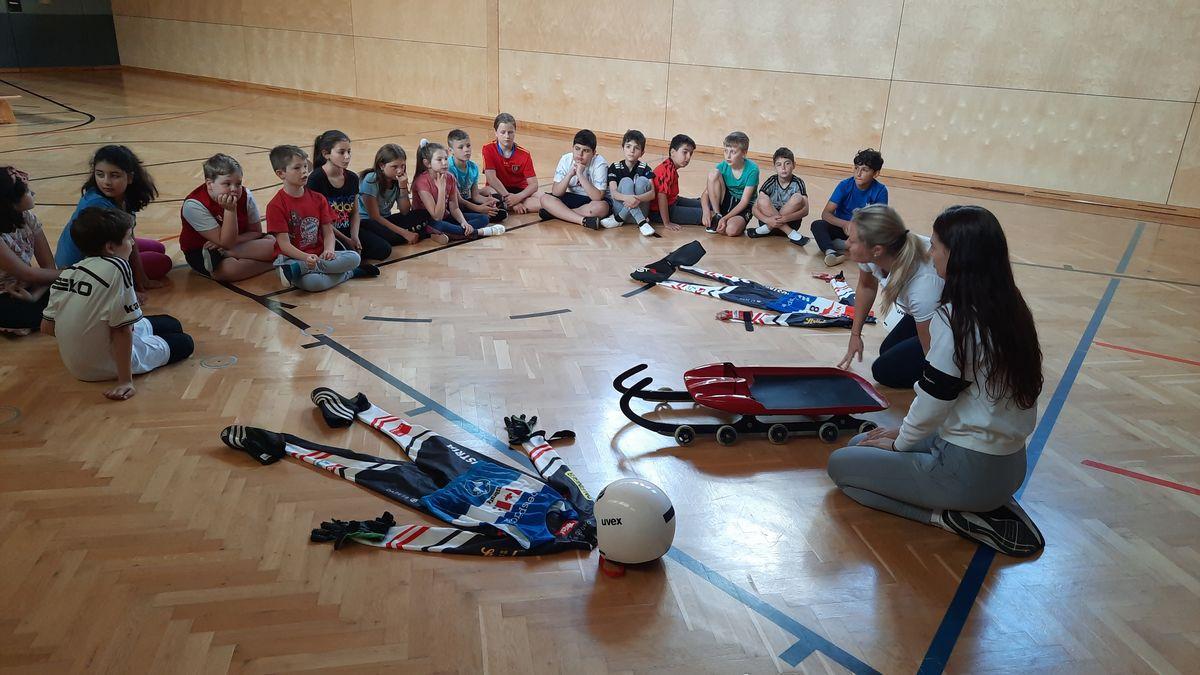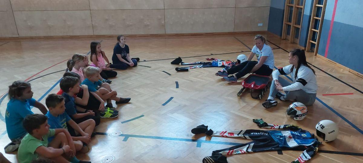 Am Mittwoch, den 1. Juni besuchte uns Inga und Anna vom Tiroler Landesrodelverband, um den Kindern das Rodeln näherzubringen. An diesem Rodelscouting nahmen alle Klassen mit Begeisterung teil. Anna und Inga erklärten den Kindern zuerst einige wichtige Dinge und Fakten über das Rodeln (Anzug, Helm, Ausstattung der Rodel, Kunstbahn, Training, ...). Im Anschluss daran folgte eine Geschichte, in der die Kinder aktiv eingebunden waren und ein Kind di komplette Ausrüstung anziehen konnte. Als Abschluss konnte jedes Kind in eine Rodel sitzen und quer durch den Turnsaal "rodeln".