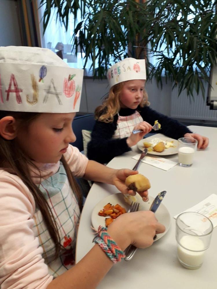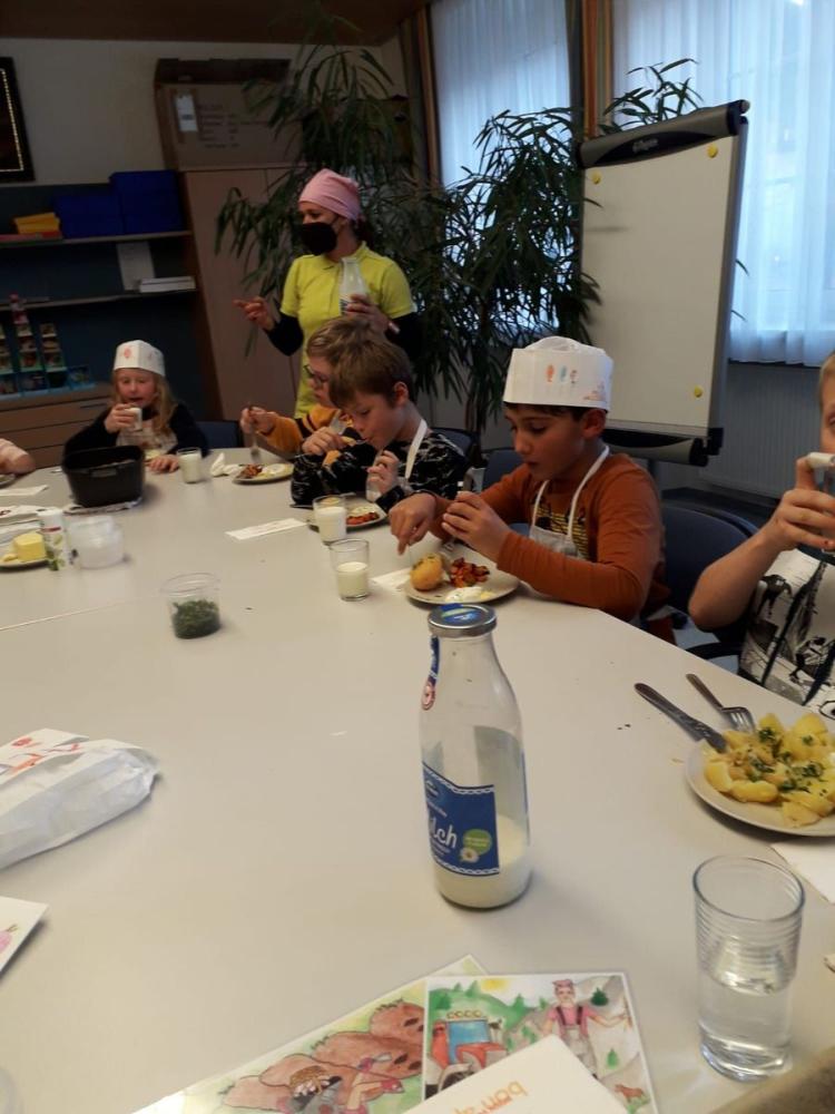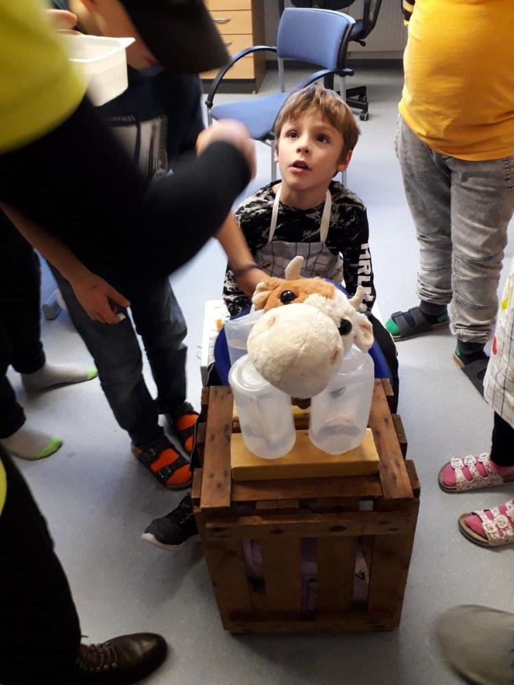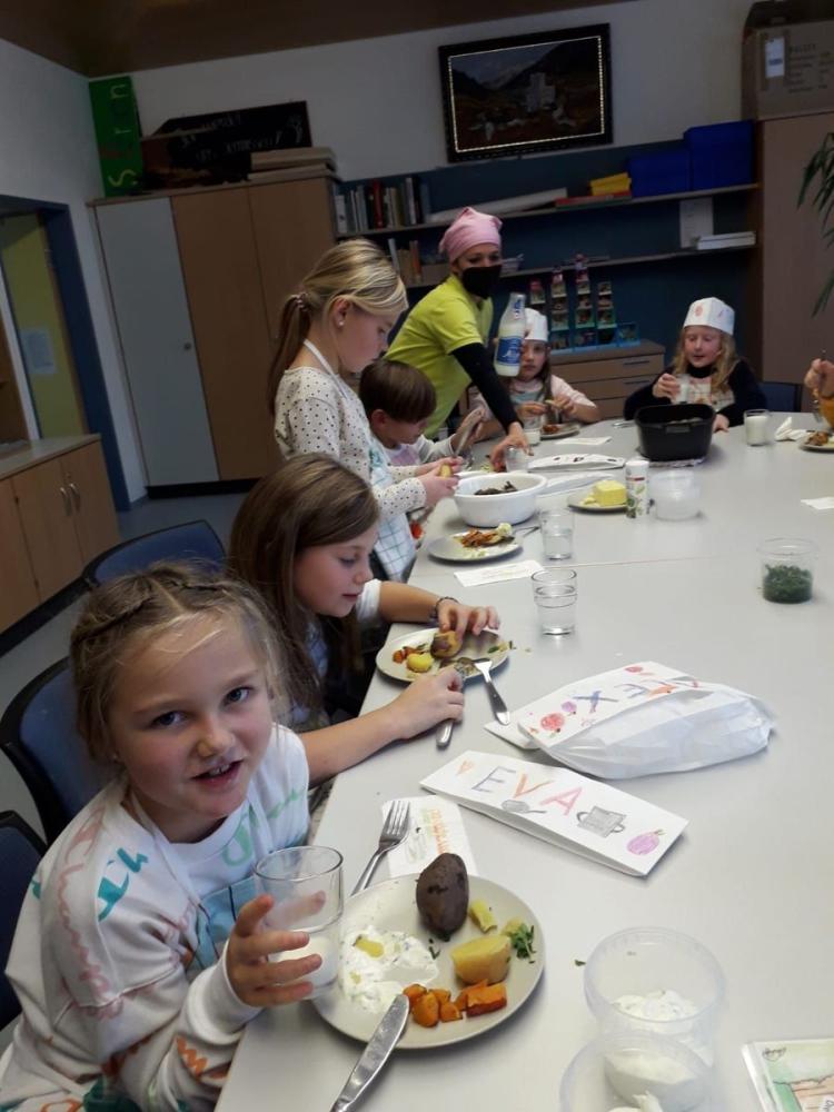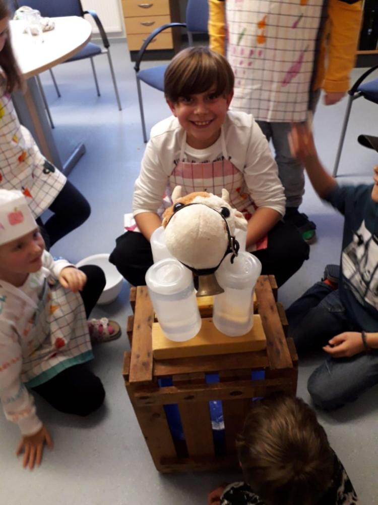 Im Rahmen der unverbindlichen Übung Ernährung und Haushalt besuchte die Seminarbäuerin Burgi am Montag, den 8. November unsere Schule. Die Kinder konnten Kürbisse schneiden und im Backrohr zubereiten, die anschließend mit einem ausgezeichnet schmeckenden Dip und Kartoffeln verzehrt wurden. Als Abschluss konnten sich die Kinder im "Handmelken" versuchen.