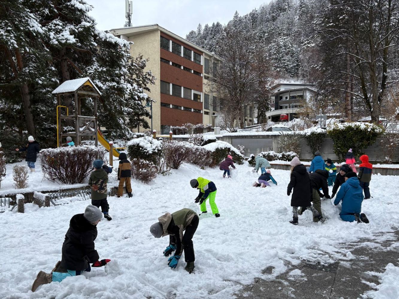 Schneespaß im Pausenhof