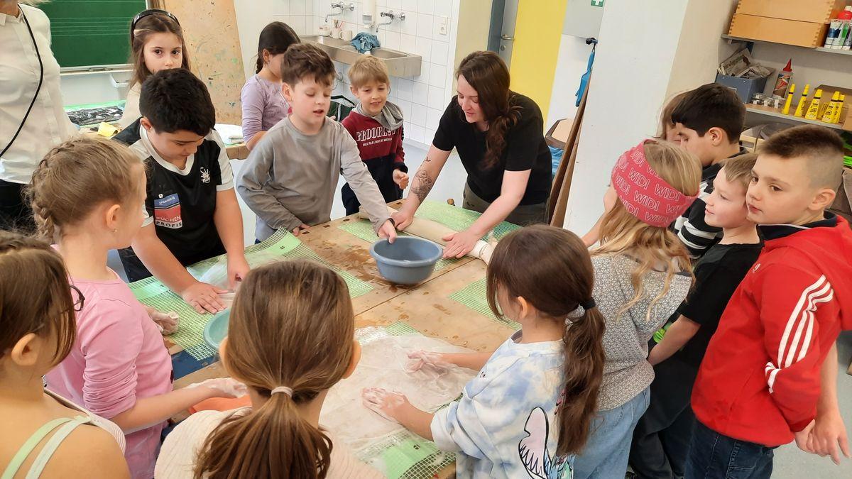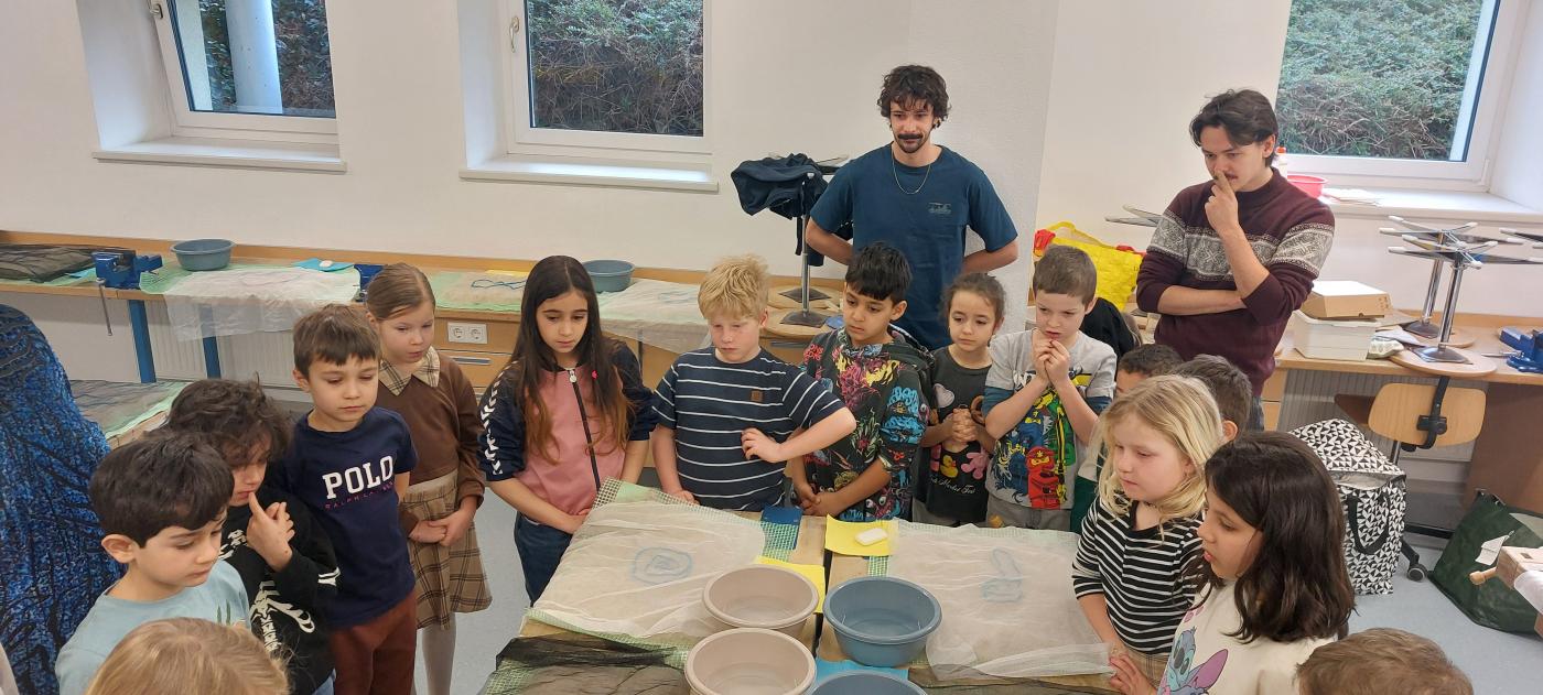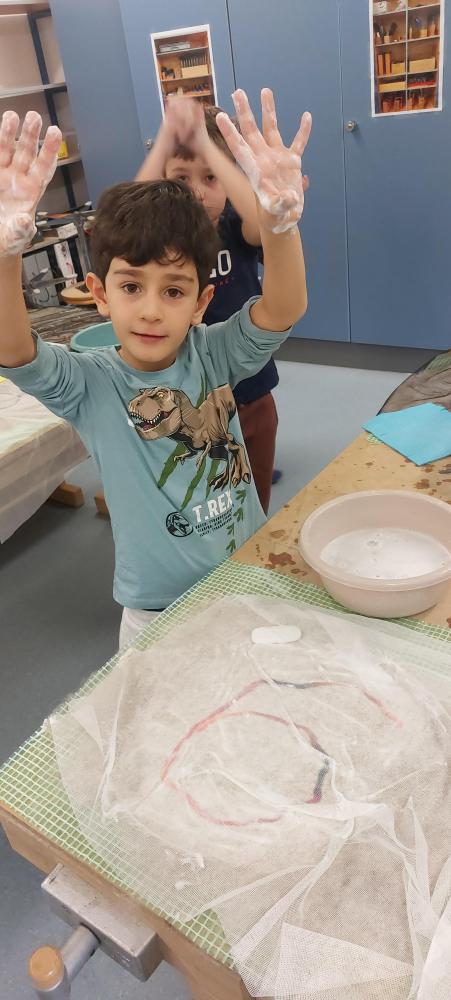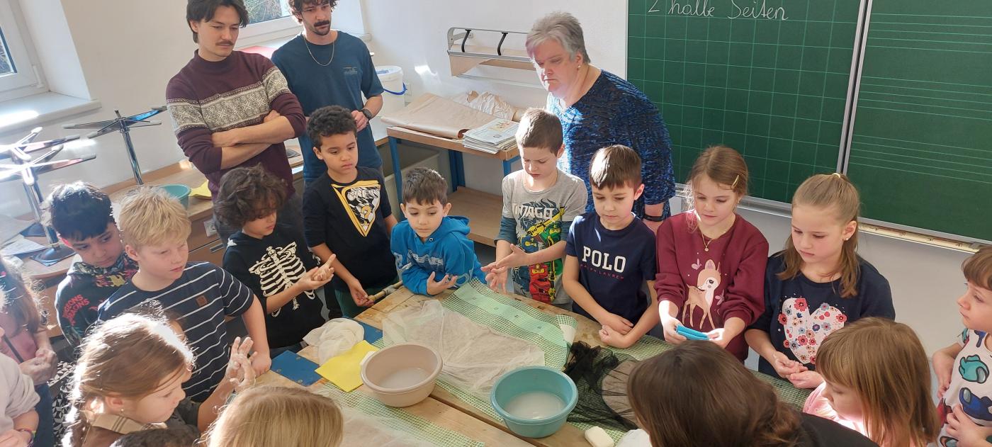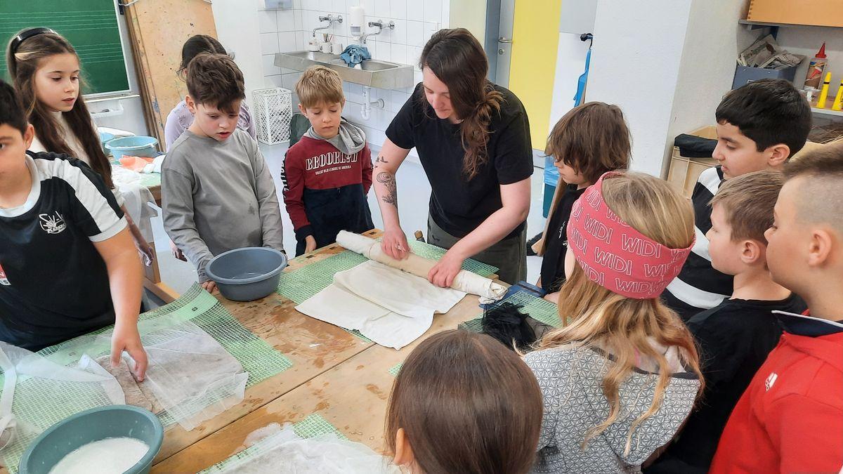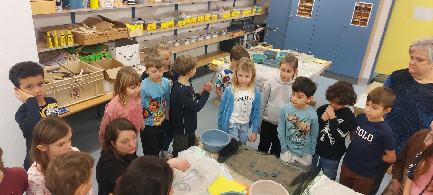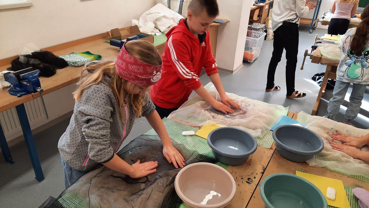Am Dienstag, den 25. Februar besuchte uns Marlena Strauß, um mit den Kindern eine Sitzunterlage zu filzen. Dazu bekam jedes Kind ein vorbereitetes Stück Schafwollvlies und verschiedene Fäden, um die Sitzunterlage mit einem Muster zu verzieren. Mit viel Wasser und Seife wurde anschließend die Sitzunterlage vorsichtig gefilzt. Immer wieder bekamen die Kinder Tipps und Tricks von Marlena, damit ihr Sitzfleck zu einem Kunstwerk wurde. Der Kreativität waren fast keine Grenzen gesetzt. Die Kinder hatten sichtlich Spaß und präsentierten voller Stolz ihre Sitzunterlage.
