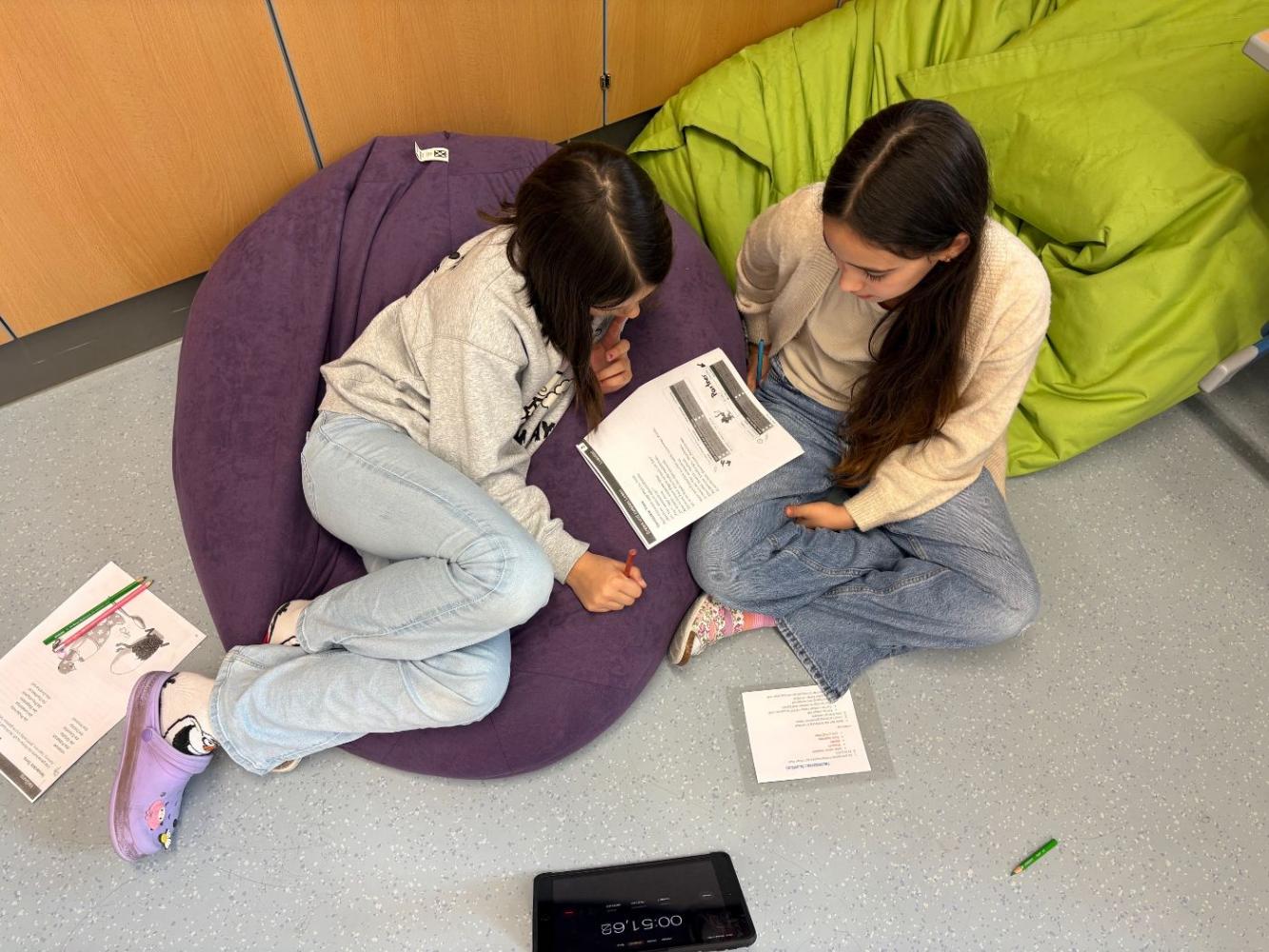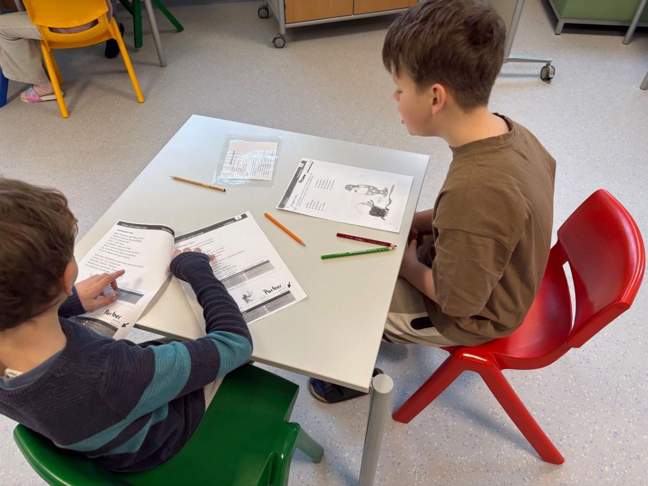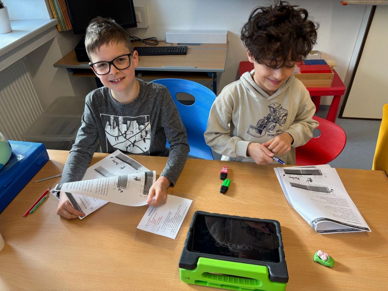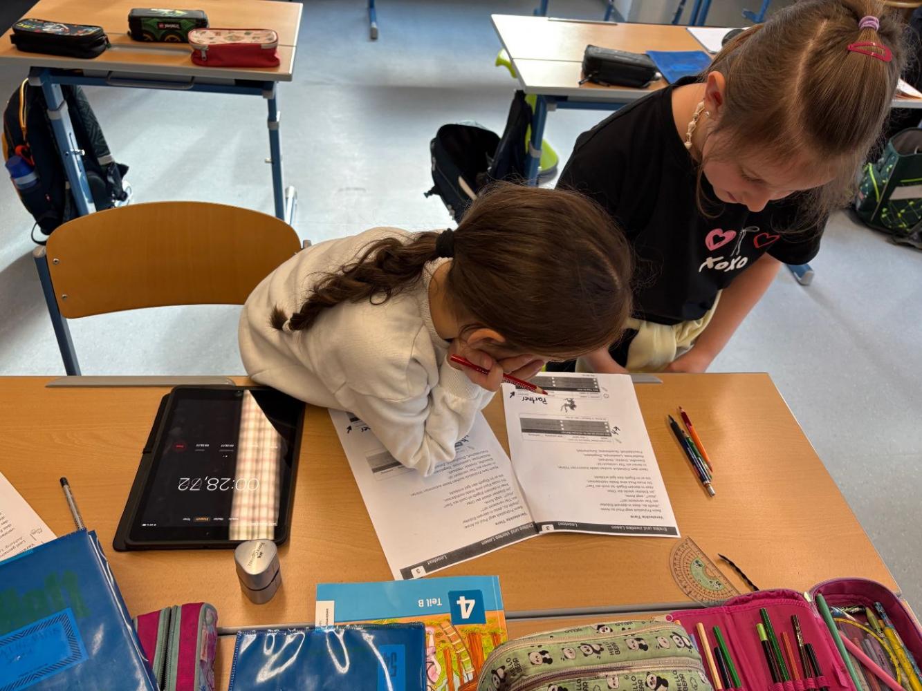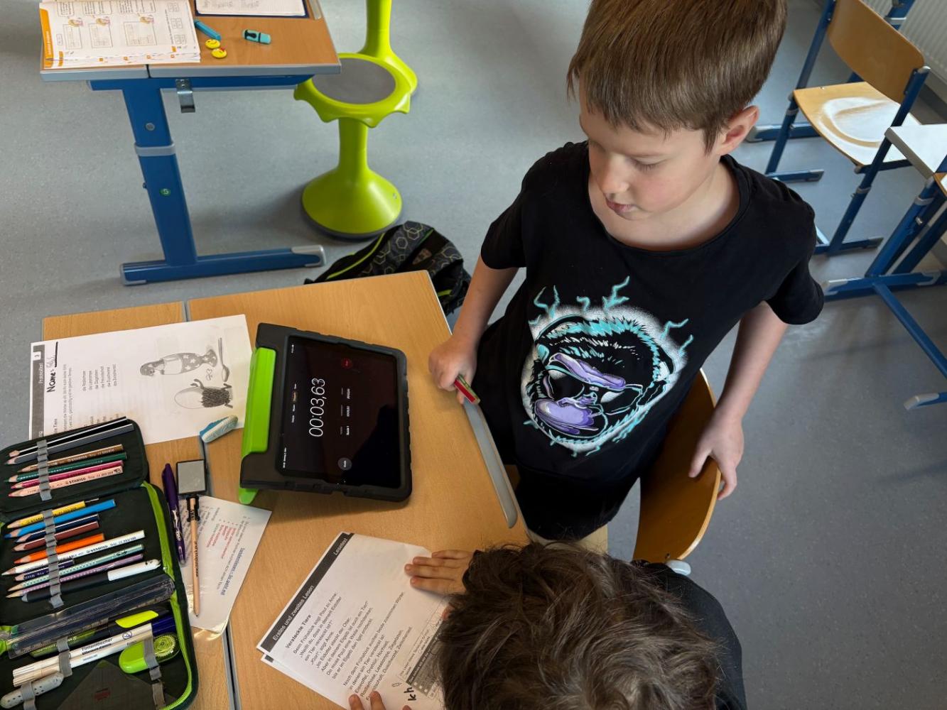 Bei uns an der Schule treffen sich die Schülerinnen und Schüler der 3. und 4. Schulstufe regelmäßig zum Tandemlesen. Dabei lesen jeweils zwei Kinder gemeinsam einen Text. Anschließend liest ein Kind den Abschnitt erneut, während das Partnerkind die Zeit stoppt. Darauf folgt eine wertschätzende Selbst- und Fremdeinschätzung des Lesevortrags. Beim nächsten Treffen werden die Rollen getauscht.
