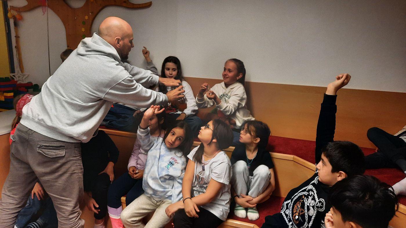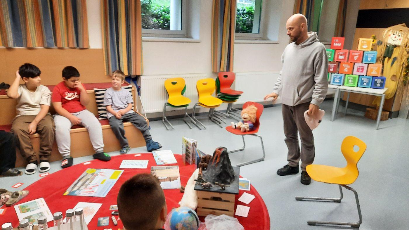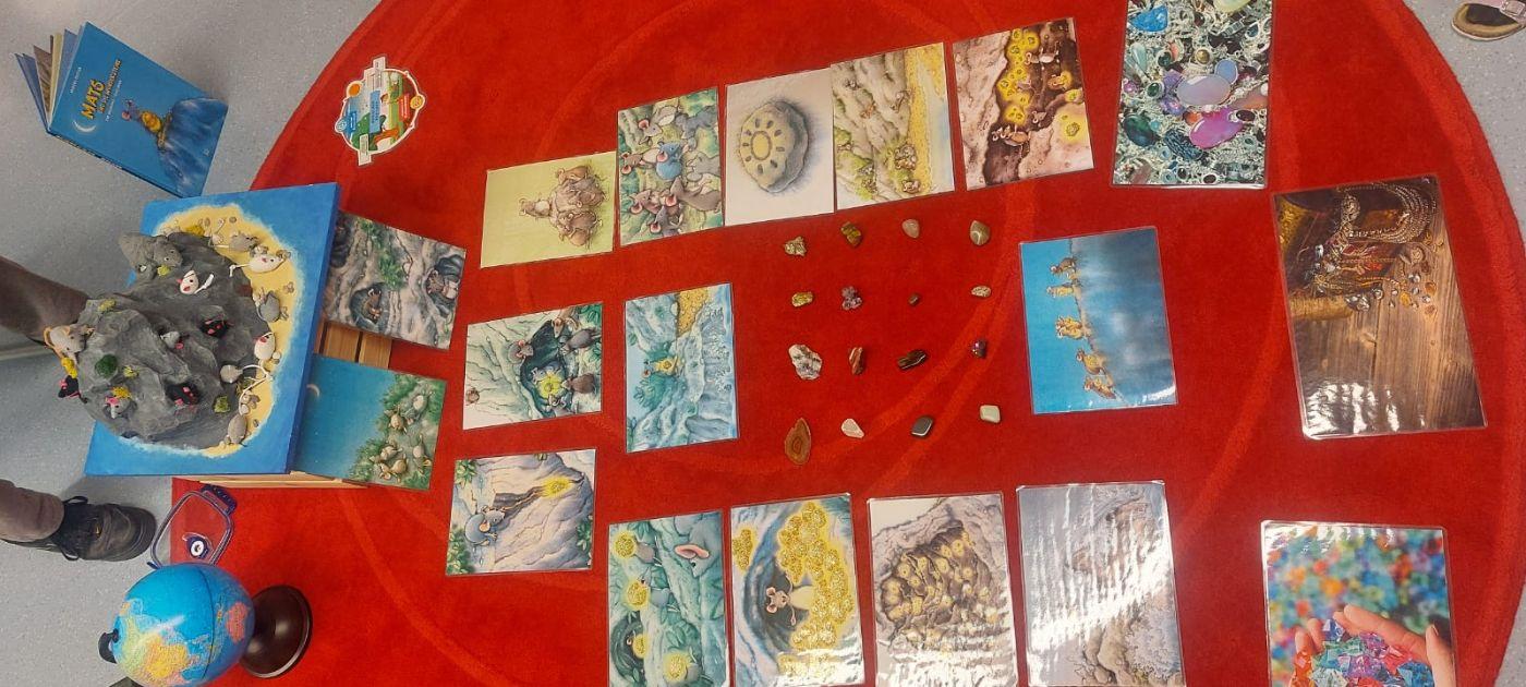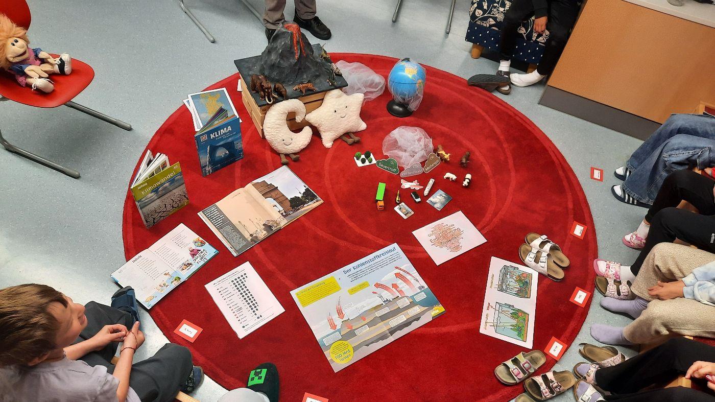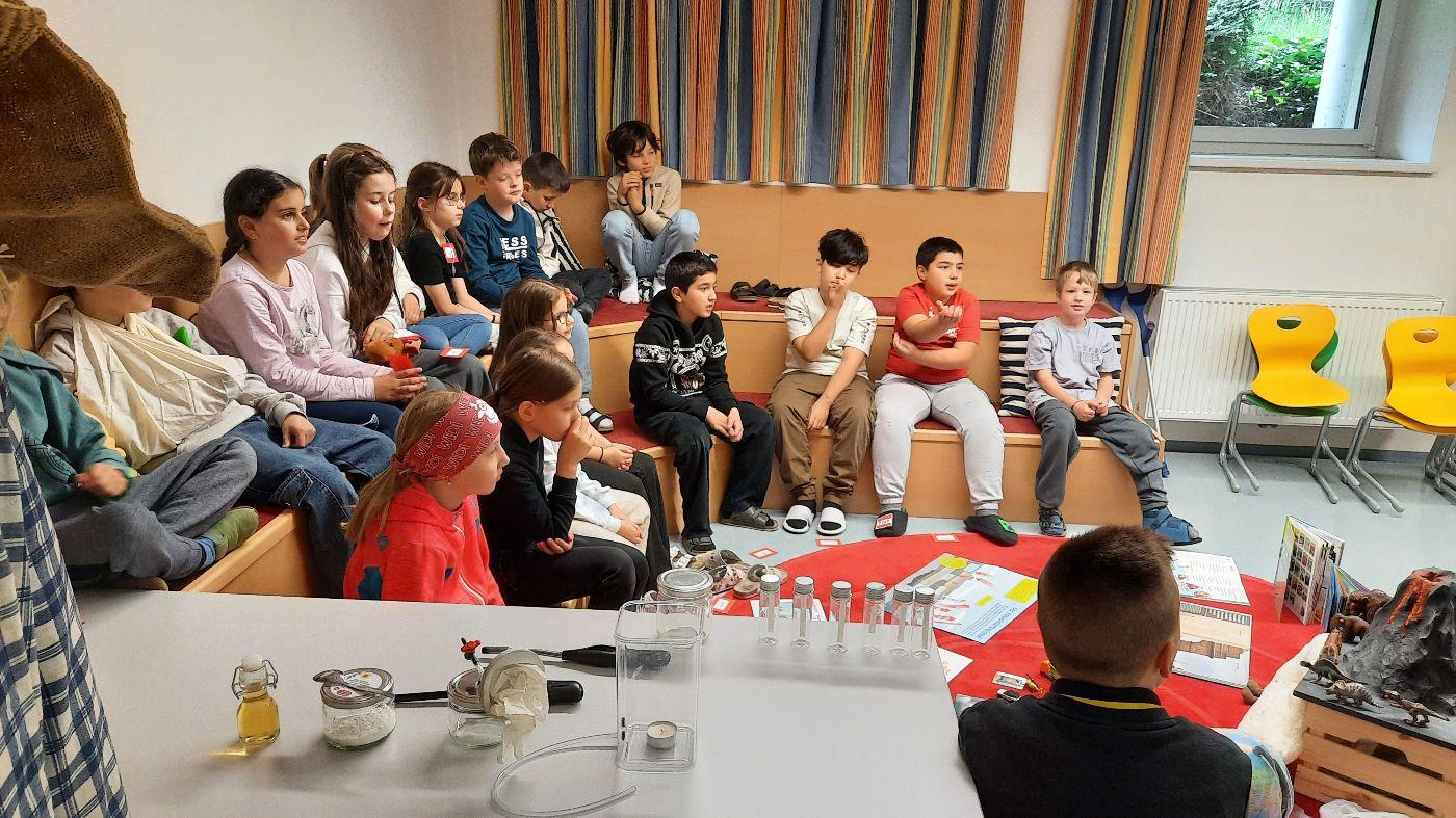 Die Kinder der ersten und zweiten Schulstufe beschäftigten sich mit Hilfe des Buches "Mats und die Wundersteine" mit den auf unserm Planeten verfügbaren Rohstoffen und deren Nutzung. Es wurden Fragen wie zum Beispiel: Rohstoffe der Verpackungen - Wie werden sie gewonnen?; Wo kommen sie her?; Wie werden Abfälle getrennt und was passiert dann damit? Mit Hilfe von Geschichten, Modellen usw. wurde den Kindern das komplexe Thema näher gebracht.