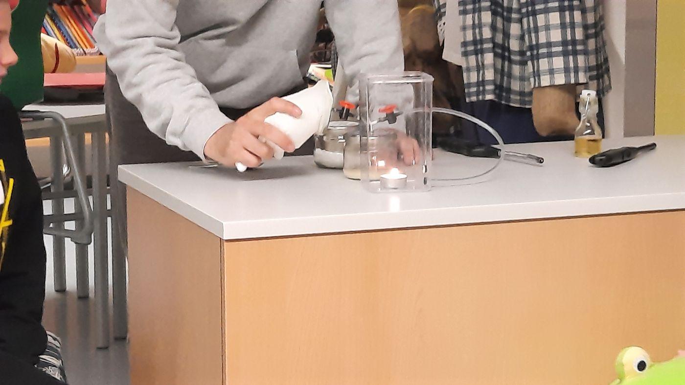 Die Kinder der dritten und vierten Schulstufe beschäftigten sich mit dem Klimawandel. Sie erörterten Fragen nach der Zusammensetzung der Luft oder die Entstehung bzw. Vermeidung von CO2. Spannend war auch das Experiment, bei dem mit Hilfe von Backpulver und Essig CO2 hergestellt wurde, um eine Kerze auszulöschen. Weiters wurde die Frage geklärt, was "Treibhausgase" sind und was die durch den Menschen freigesetzten Gase alles verursachen. Es war eine spannende und interessante Reise.