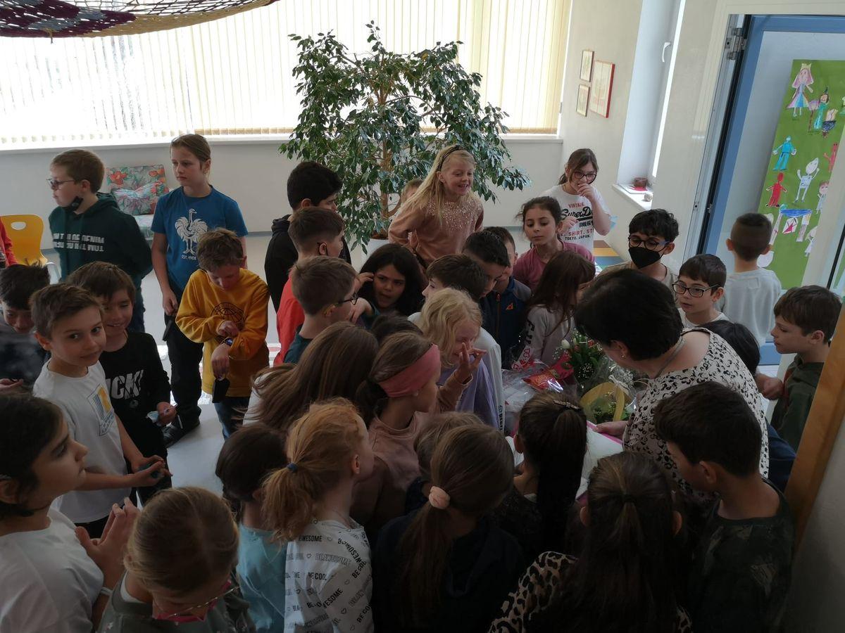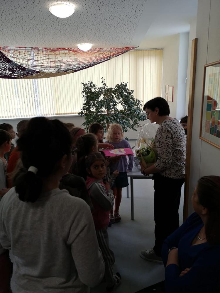 Am Freitag, den 1. April mussten wir uns von unserer Werklehrerin Claudia Kössler verabschieden, die ab April ihren wohlverdienten Ruhestand genießt. Mit einem Abschiedslied bedankten sich alle Kinder und LehrerInnen für alle Techniken, die sie den Kindern beigebracht und die vielen Werkstücke, die Claudia mit ihnen hergestellt hat.