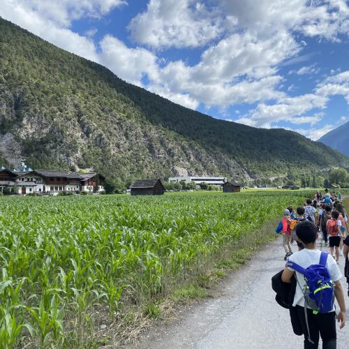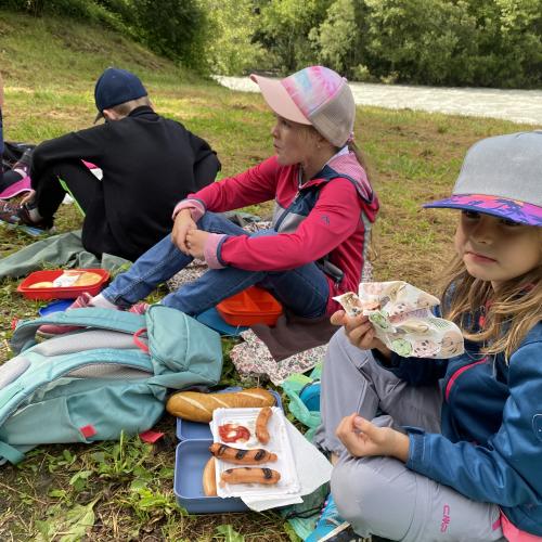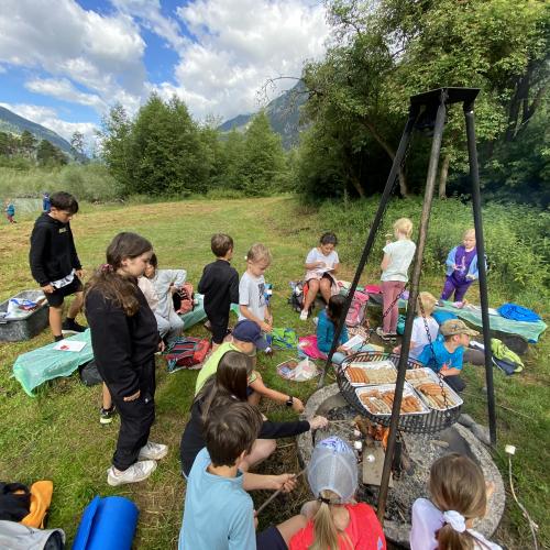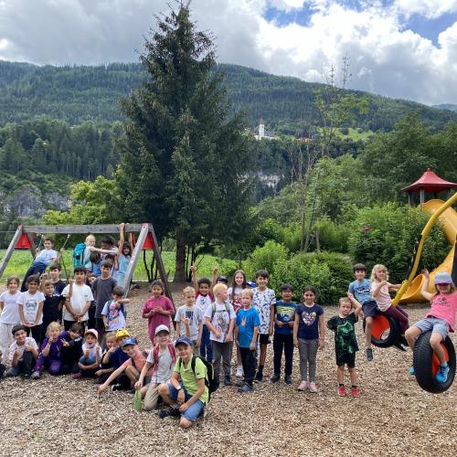 Heute, am 2.7.2024, machten wir uns mit dem Bus auf den Weg nach Schönwies. Von dort wanderten wir Richtung Alpenrast Tyrol in Mils. Kurz vor der Ankunft grillten wir noch ein paar Würstchen und wanderten anschließend weiter zum Spielplatz.