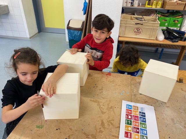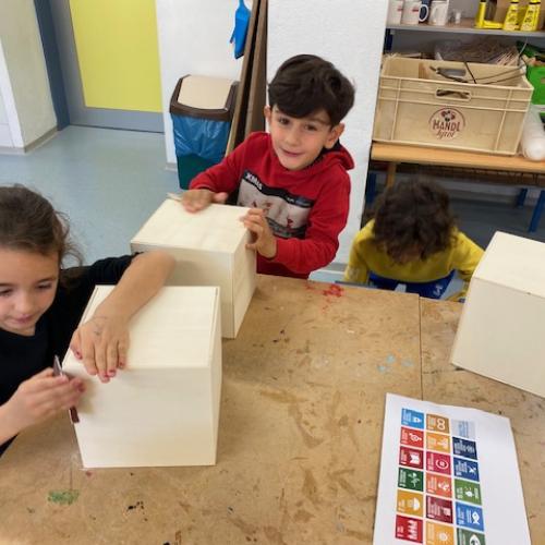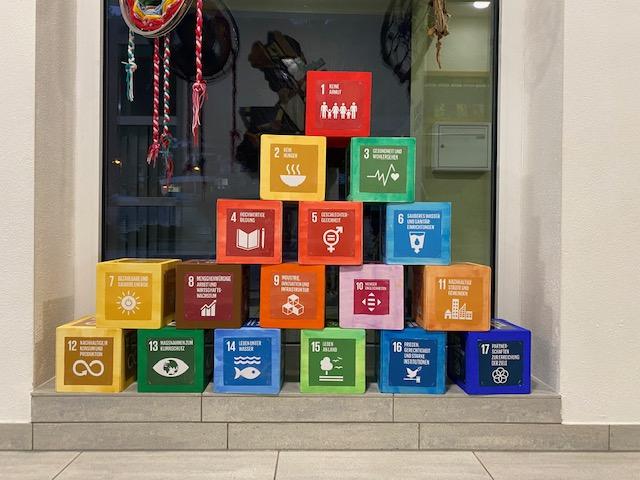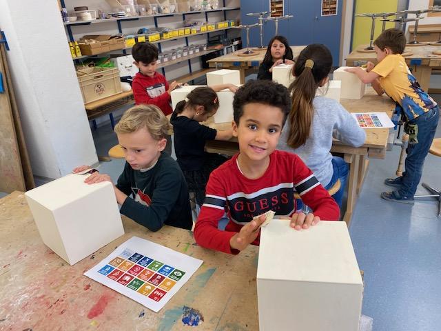 Wir möchten unseren Schülerinnen und Schülern die 17 Ziele für nachhaltige Entwicklung (SDGs) der Vereinten Nationen kontinuierlich näherbringen. Diese Ziele sind ein globaler Plan, um Armut zu beenden, den Planeten zu schützen und Wohlstand für alle zu fördern. Um das Verständnis und das Engagement der Kinder für diese wichtigen Themen zu fördern, haben die Kinder der ersten und zweiten Stufe SDG-Würfel gebastelt, die die einzelnen Ziele darstellen. Mehr Infos gibt es HIER.