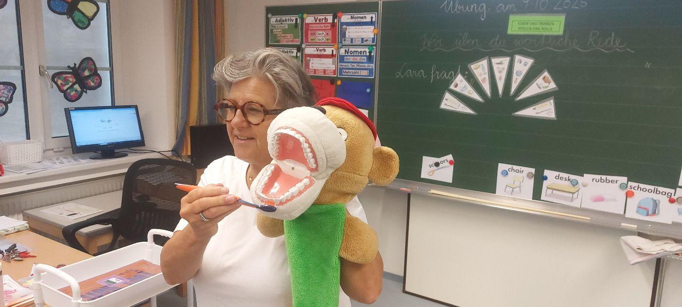 Diese Woche besuchte Mariann von AVOMED unsere Schule und brachte den Kindern auf spielerische und kindgerechte Weise die Bedeutung der Zahngesundheit näher. Mit viel Engagement und Spaß lernten die Schülerinnen und Schüler, wie richtiges Zähneputzen funktioniert und warum es so wichtig ist, gut auf die eigenen Zähne zu achten.