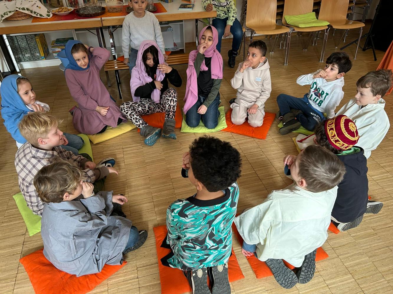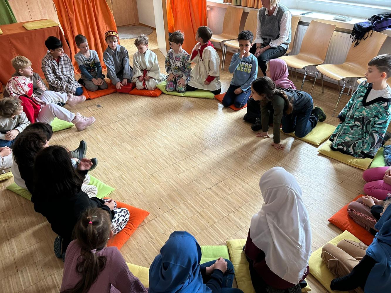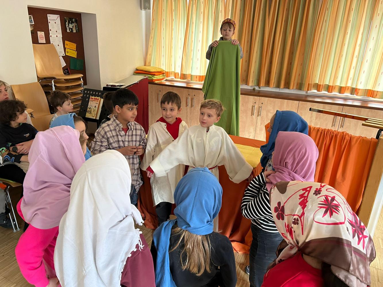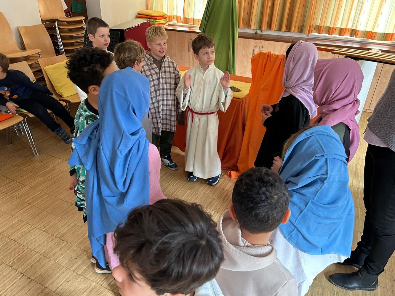 Am Freitag, den 30.1. 2025 spielten wir mit Claudia Geiger die Geschichte von Zachäus nach. Unsere Schülerinnen und Schüler haben die Geschichte von Zachäus auf multireligiöser Basis nachgespielt. Christentum, Judentum, Islam, Hinduismus oder Buddhismus haben die Themen Vergebung, Umkehr und Nächstenliebe erkundet. Diese Aufführung zeigte die universellen Werte, die uns alle verbinden. Danach aßen und tranken wir gemeinsam. Danke für die Einladung.